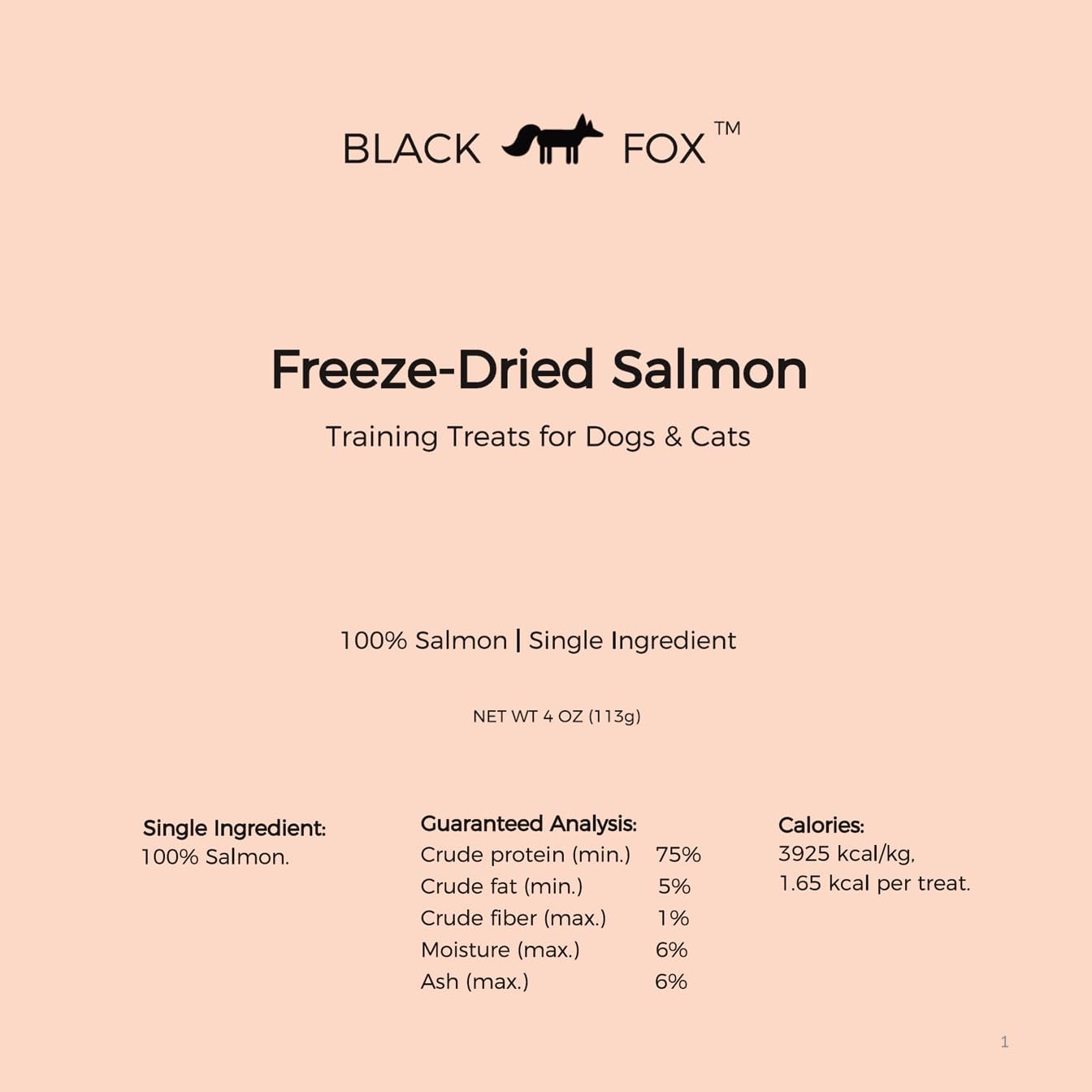 BLACK FOX Freeze-Dried Salmon Training Treats for Dogs and Cats | 280 Treats, 4oz Single Ingredient, Raw, Healthy, All Natural, Human Grade, Recyclable Packaging