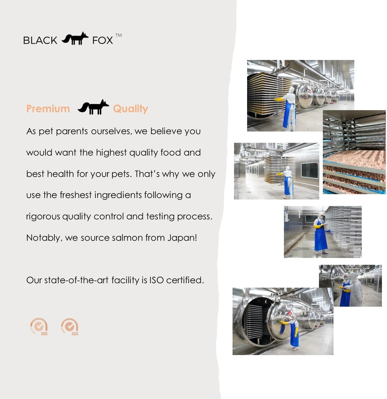 - Single Ingredient Grain Free: Designed for both dogs and cats, our high protein BLACK FOX Freeze-Dried Salmon training treats are single ingredient, high omega-3 fatty acids, high protein, low fat, free of additives, preservatives, and gluten. We source salmon from Japan's fresh seafood market.