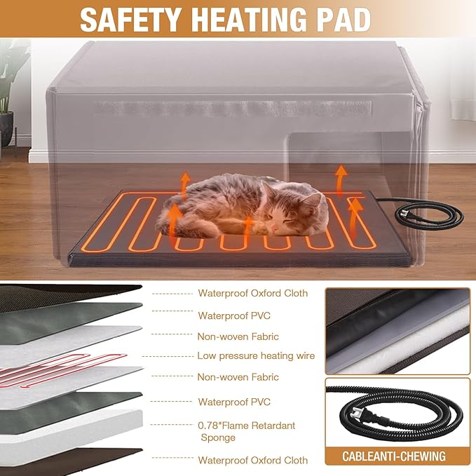 - Efficient Insulation - This cat house with 6 sides all-around insulated liner to ensure superior warmth. Crafted with 3 layer insulated materials (solid wood+plywood+ thermal liner), protects cats from any extreme outdoor conditions
