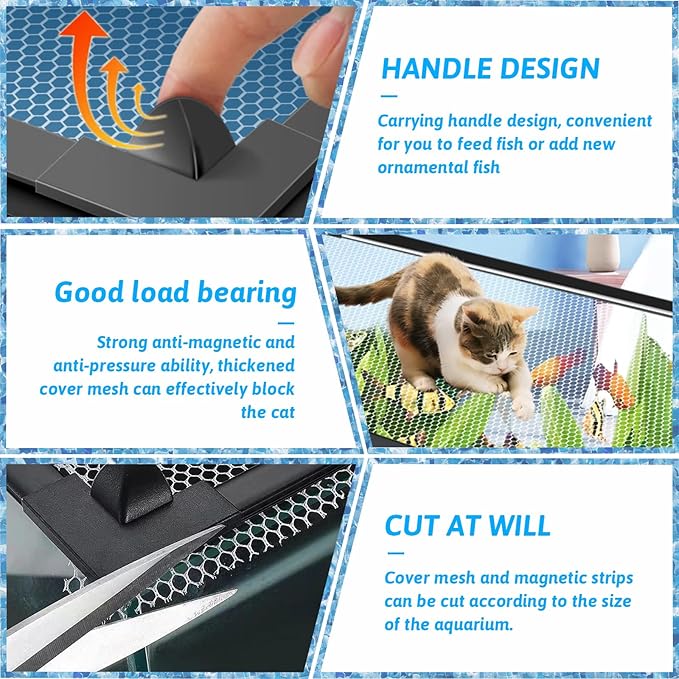 - PROTECT YOUR FISH: The magnetic aquarium lid uses strong magnetic strips to provide strong support for the aquarium lid, which can effectively prevent cats or other animals from harming your fish