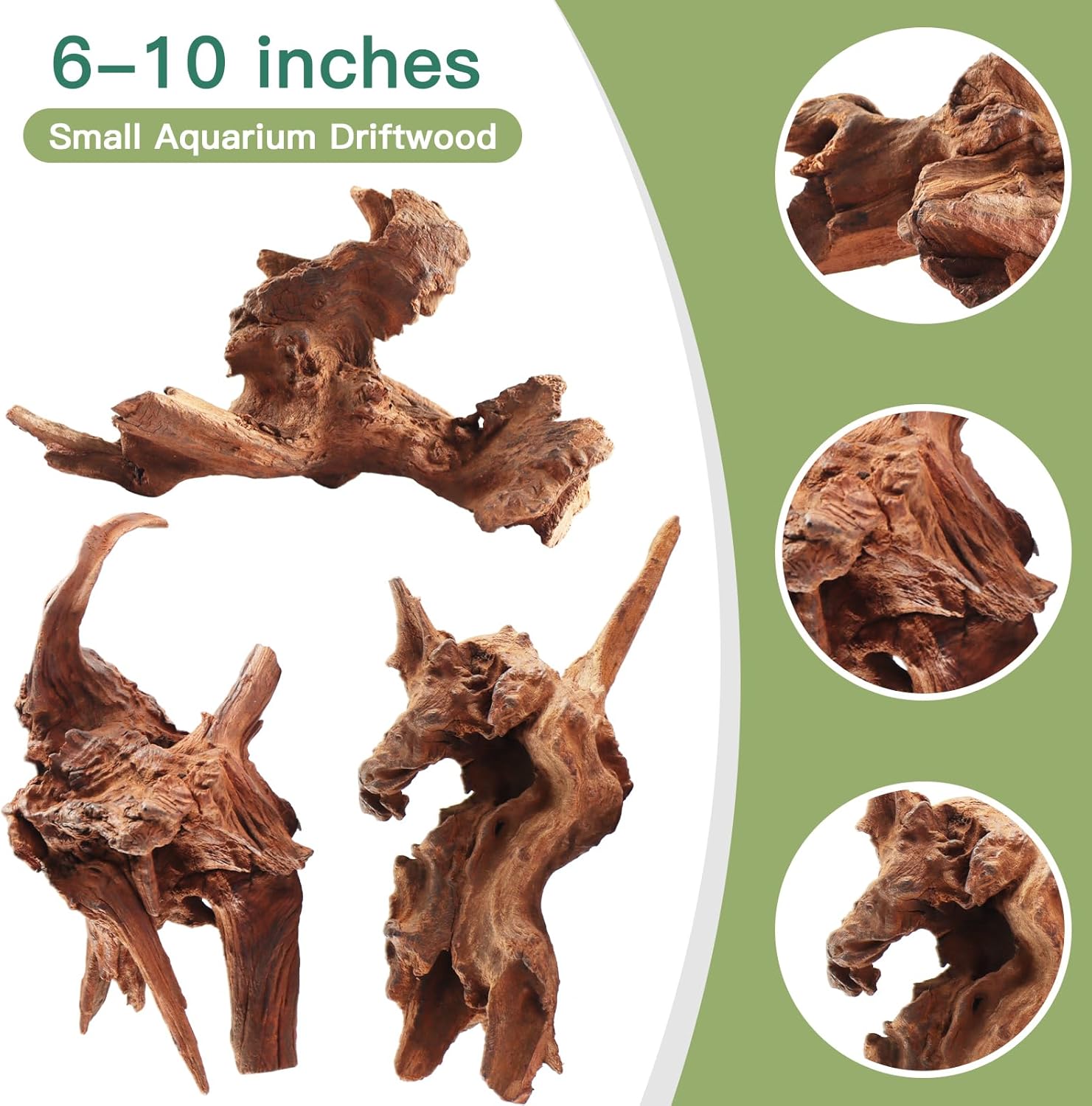 LYPHARD AQUARIUMS Driftwood for Aquarium, 3 Pieces 6-10" Natural Small Drift Wood Fish Tank Assorted Branch Decorations Pieces for Reptile Hide