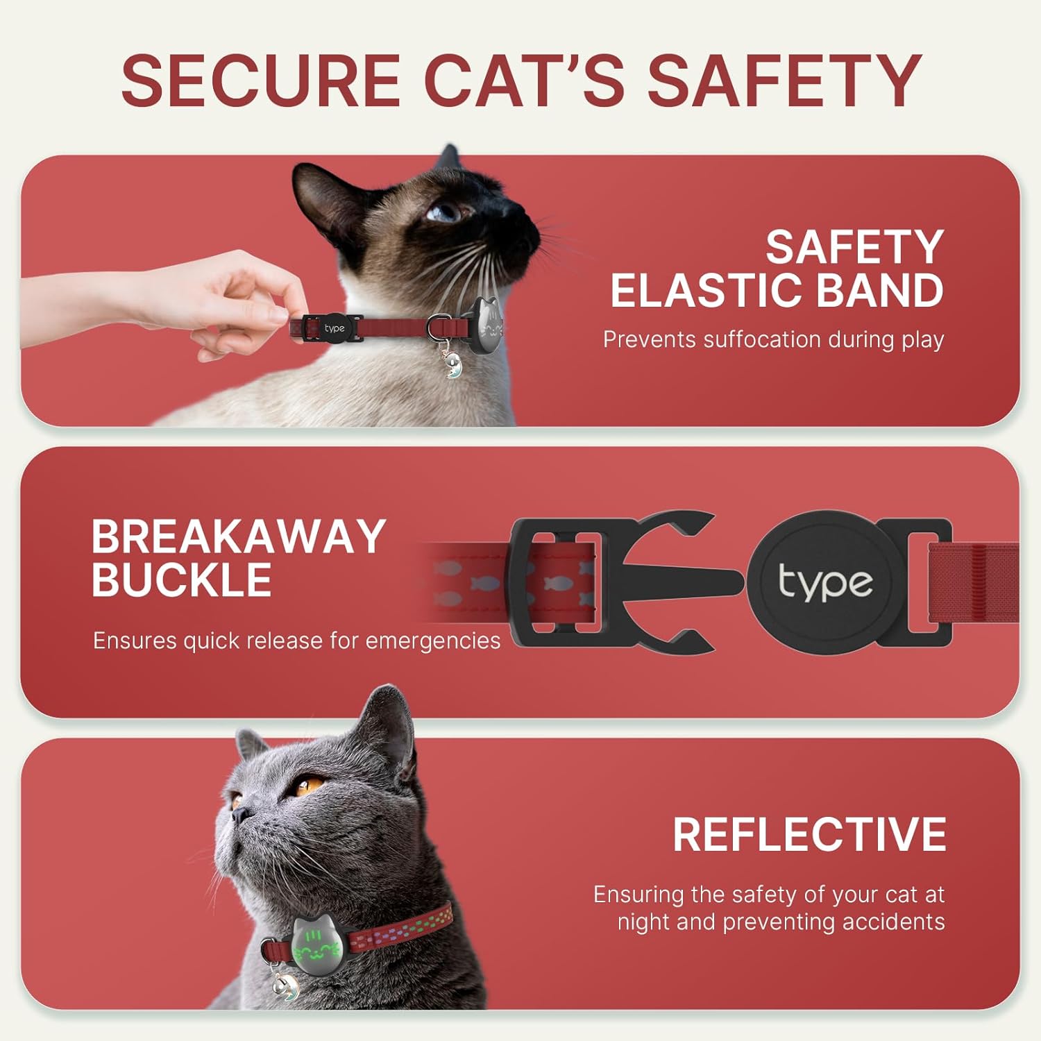 - SAFETY FIRST, ALWAYS:This collar’s got your cat covered—literally! With a smart breakaway buckle and reflective fish pattern, your cat can conquer nighttime adventures while you rest easy knowing they’re safe and stylish. (Airtag not included)