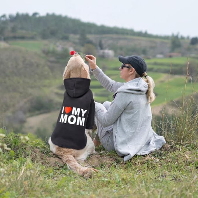GreenJoy Dog Sweater Dog Hoodie Cold Weather Dog Coat Hooded Sweatshirt for Puppies,Cats, Small Medium Large Dogs(Small, Black (I Love My Mom))