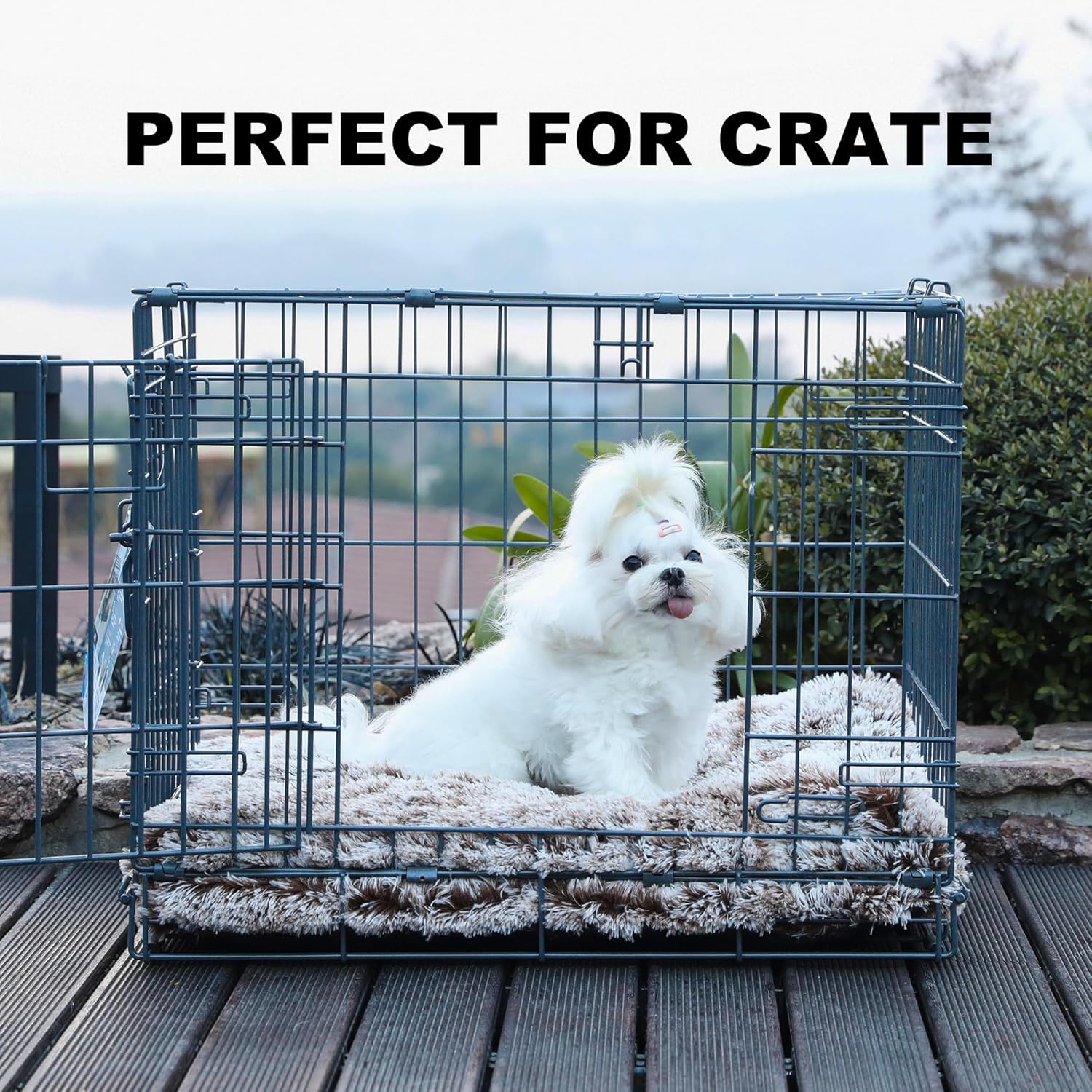 Bedfolks Waterproof Crate Bed, Plush Dog & Cat Bed with Removable Washable Cover, Faux Fur Kennel Pad, 23"x18", Brown