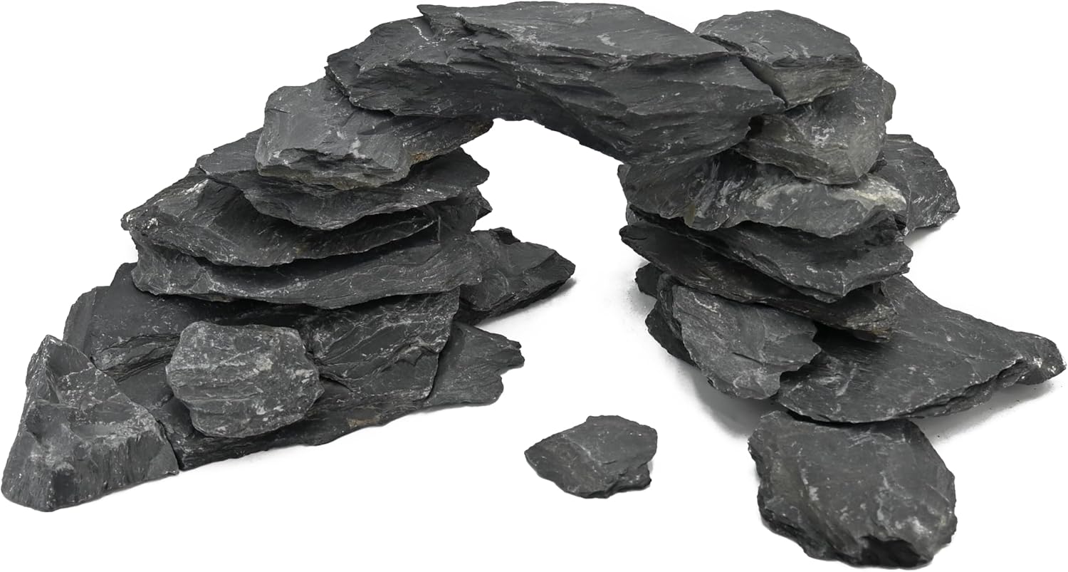 - 100% Natural Slate Rock—Made from real natural slate rock with unique textures, perfect for aquarium rocks aquascaping and terrarium decor, adding authentic beauty to your aquatic and terrarium landscapes.