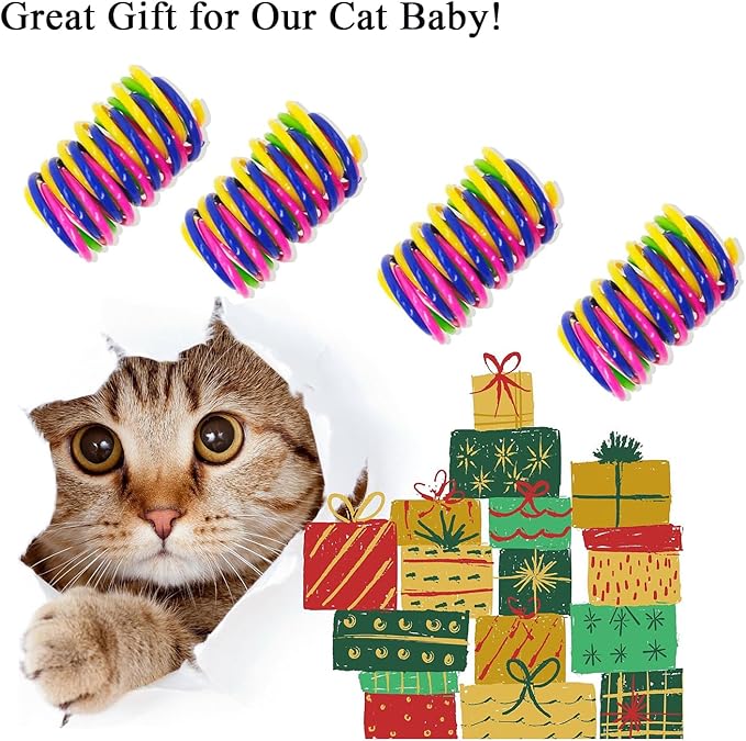 - ๐CAT TOY SPRINGS FOR INDOOR CATS - Spiral Coil Springs PROMOTE MORE FUN ACTIVE PLAY for Cats:๐These super cute cat toy springs let kittens swat, chew, attack, and pounce which stimulates natural hunt behavior and relieves stress. super amazing Cat Toys for Indoor Cats DIY Set, Suitable for Training and Playing. Funny,Colorful,Keeping cats busy and away from solitude . best cat toys for indoor cats. No cats hardly reject this toys.Great exercise for house cats!