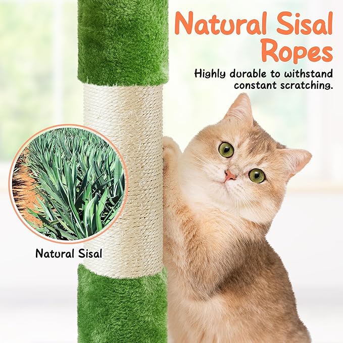 - 【Scratching Posts】Cat scratchers can make cats satisfied and protect your furniture from their paws. Three posts covered by natural sisal ropes are perfect for scratching.