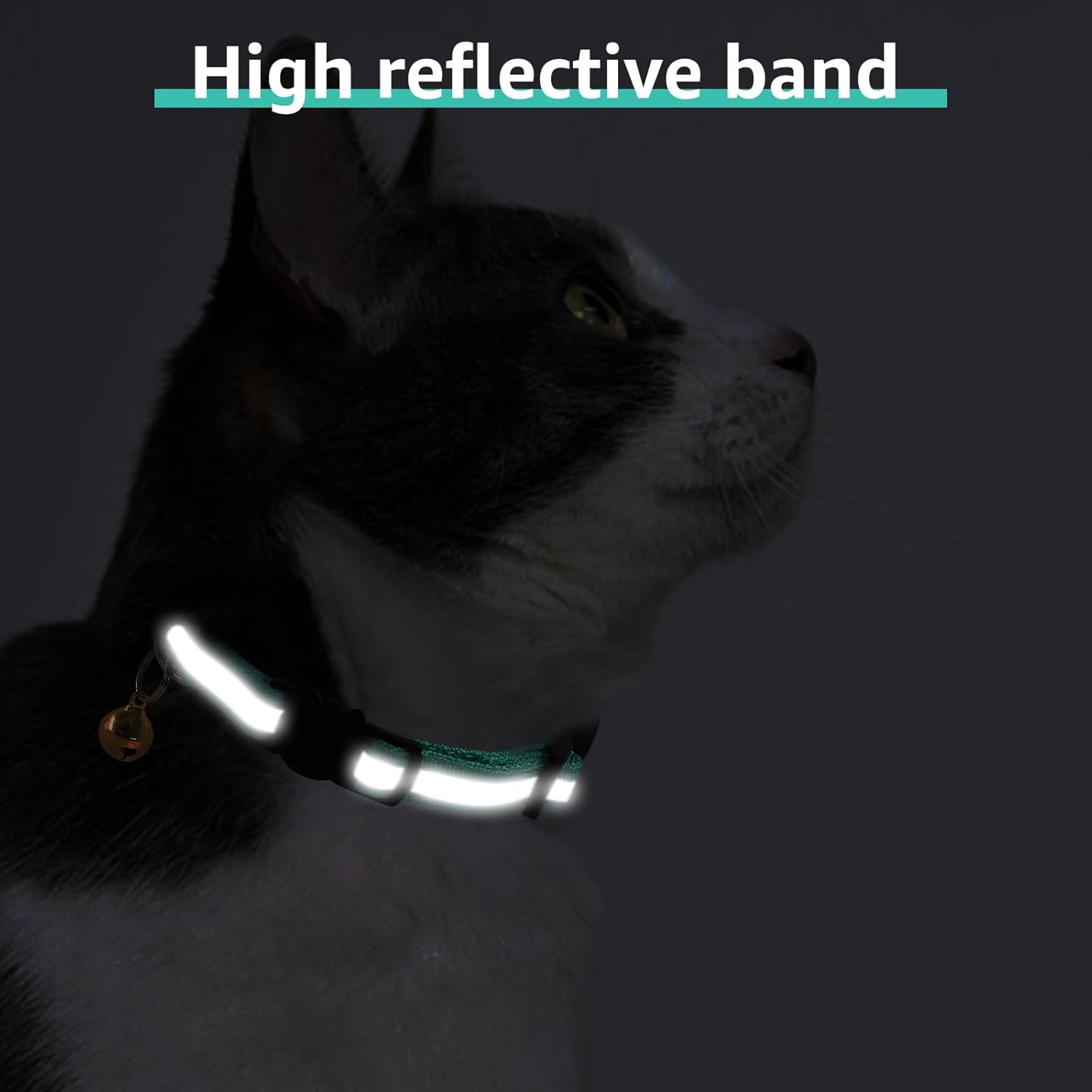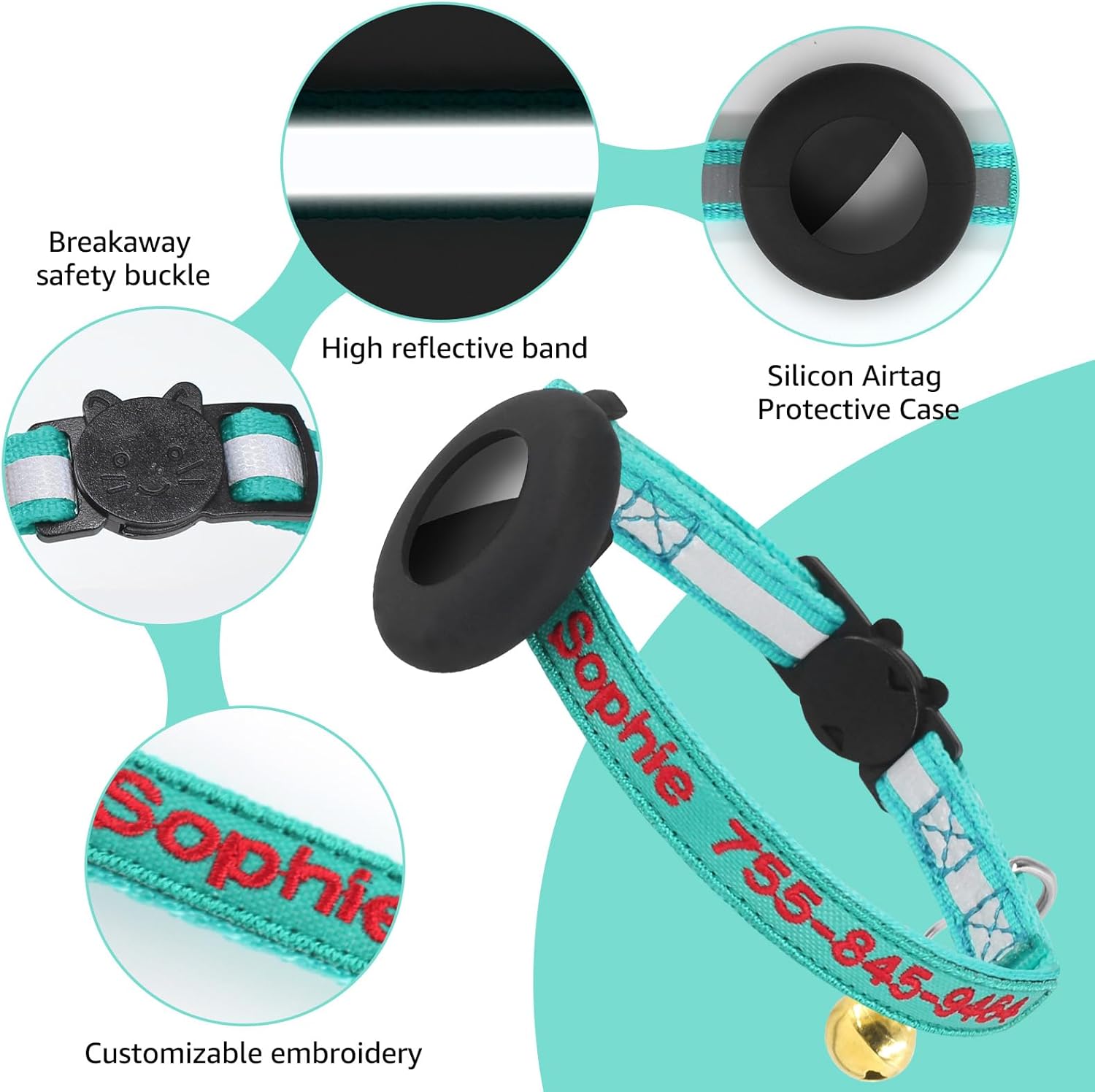 Airtag Cat Collar, Personalized Nylon Breakaway Cat Reflective Collar Embroidered with Pet Name and Phone Number with Waterproof Airtag Holder Case and Bell (with Silicone Airtag Protective Case)