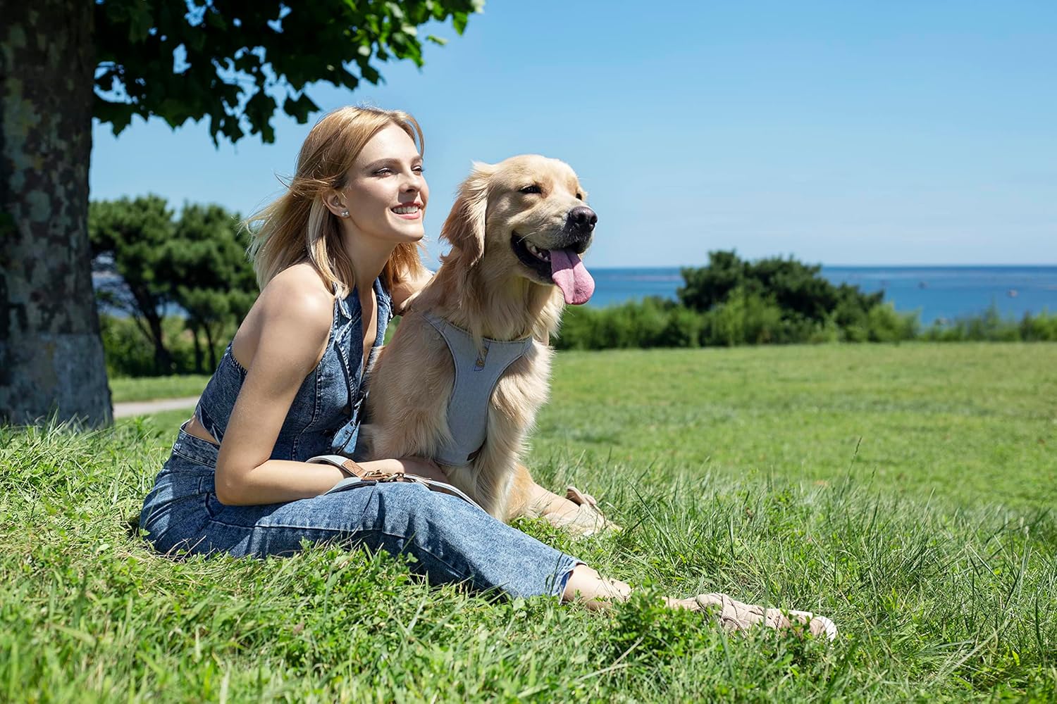 Dog Harness, No Pull Dogs Harness and Multi-Function Leash Set for Medium Dogs Easy Walk Everyday Adjustable Soft Dog Vest Harness Fashionable Dog Accessories Grey Blue-Button-Slim Large