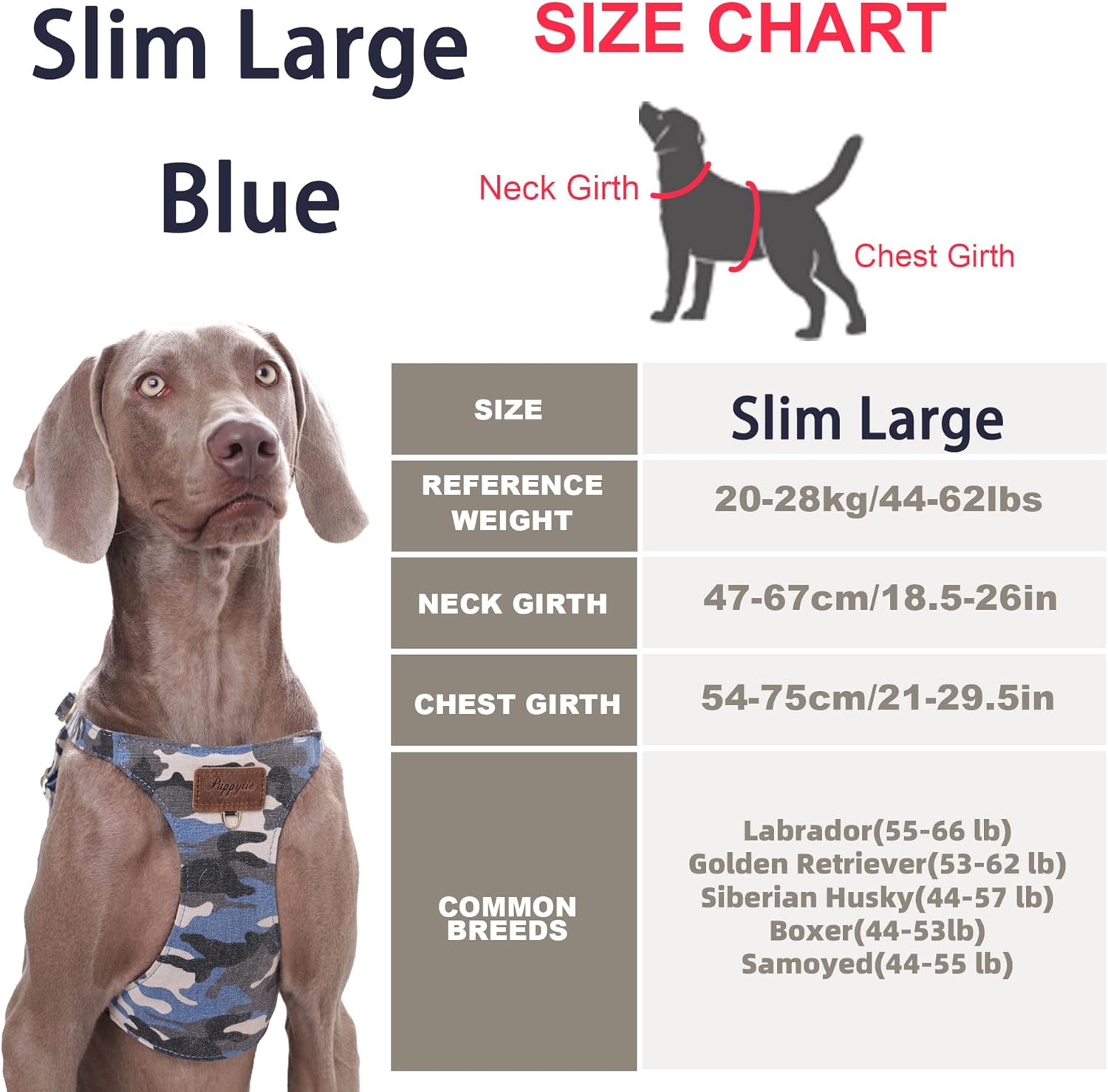 Dog Harness, No Pull Dogs Harness and Multi-Function Leash Set for Medium Dogs Easy Walk Everyday Adjustable Soft Dog Vest Harness Fashionable Dog Accessories Camouflage Blue-Slim Large