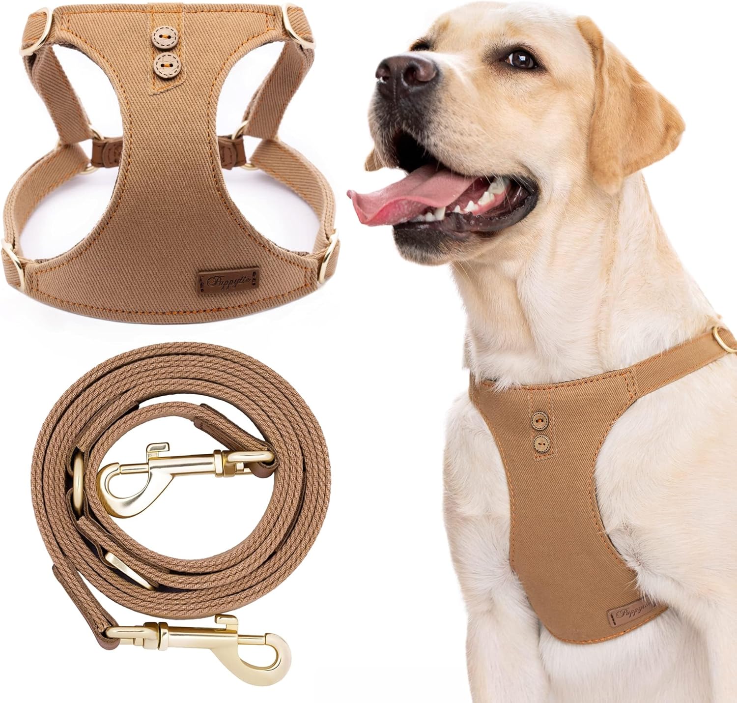 Dog Harness, No Pull Dogs Harness and Multi-Function Leash Set for Medium Dogs Easy Walk Everyday Adjustable Soft Dog Vest Harness Fashionable Dog Accessories Denim Khaki-Button-Slim Large