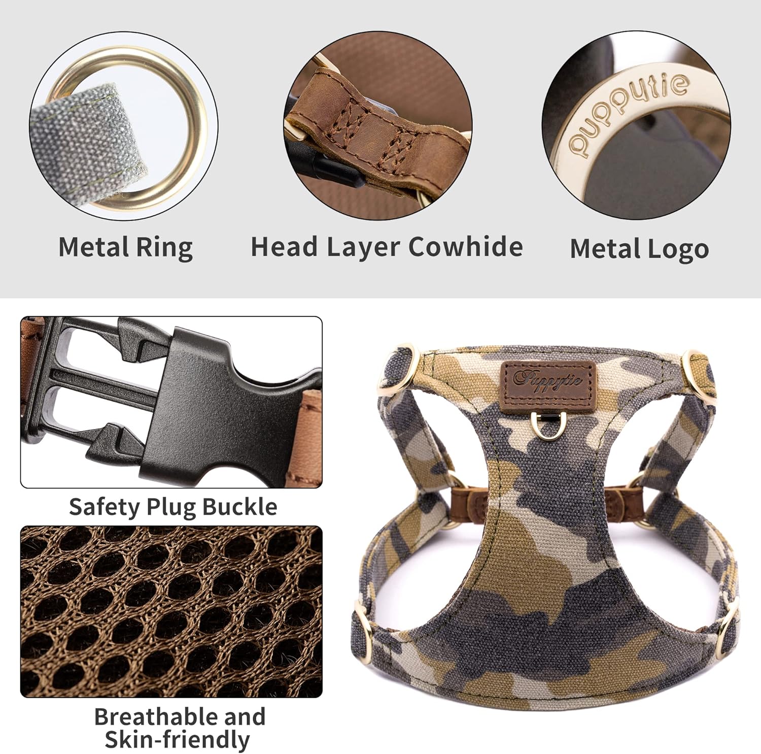 Puppytie Dog Harness & Multi-Function Leash Set for Medium Dogs (16lb-35lb), Camouflage Brown, M, No Pull, Easy Walk, Adjustable, Soft Dog Vest Harness, Fashionable Dog Accessories