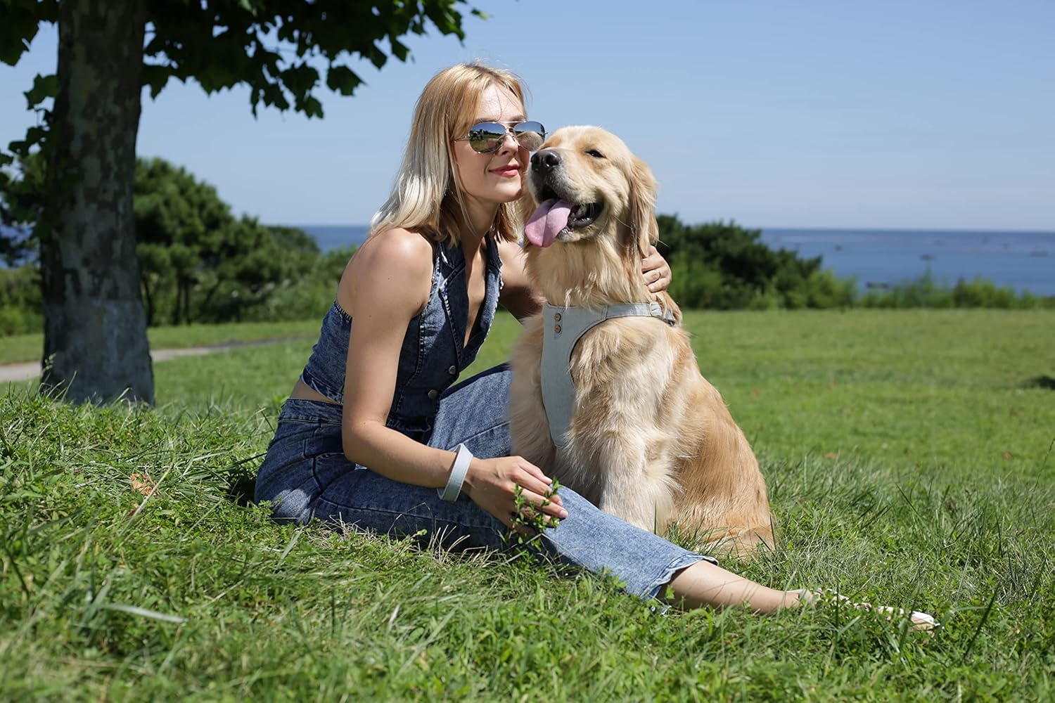 Dog Harness, No Pull Dogs Harness and Multi-Function Leash Set for Medium Dogs Easy Walk Everyday Adjustable Soft Dog Vest Harness Fashionable Dog Accessories Grey Blue-Button-M(16lb-35lb)