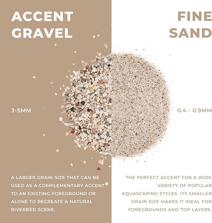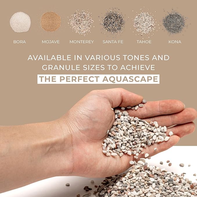 - [Fine-grained Substrate] Our fine-grained Mojave sand is a mixture of richer colors, producing a warmer tone. This fish tank substrate also works in blackwater aquariums, biotopes or planted tanks that feature Dragon Stone or aquarium driftwood.