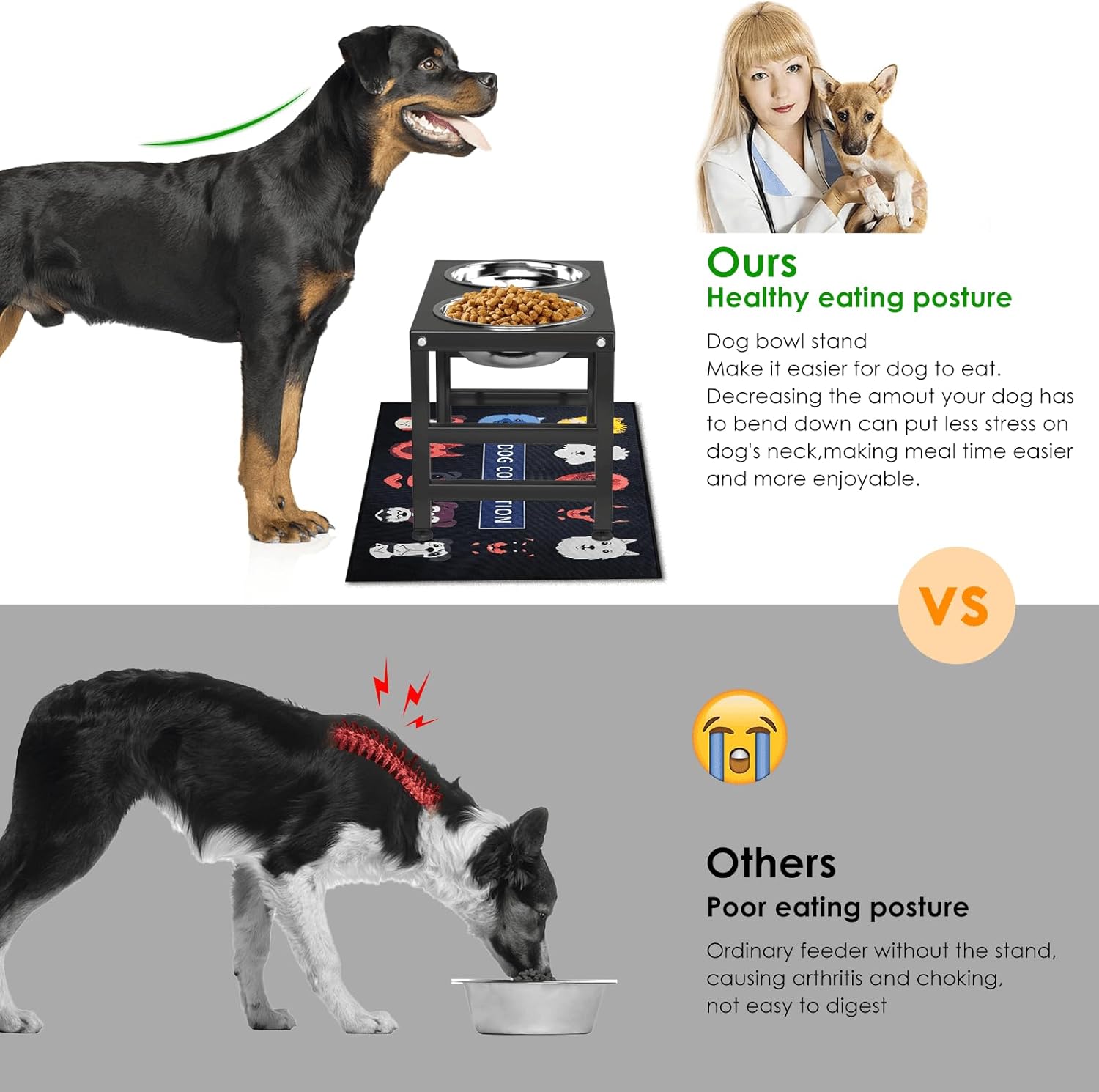- 【KEEP YOUR FLOOR CLEAN】- The ADENGL raised dog bowl comes with a splash-proof mat that can be placed underneath the bowl rack, spilled food and water can be well collected by the mat to keep the feeding area dry and tidy. Perfect for messy eaters
