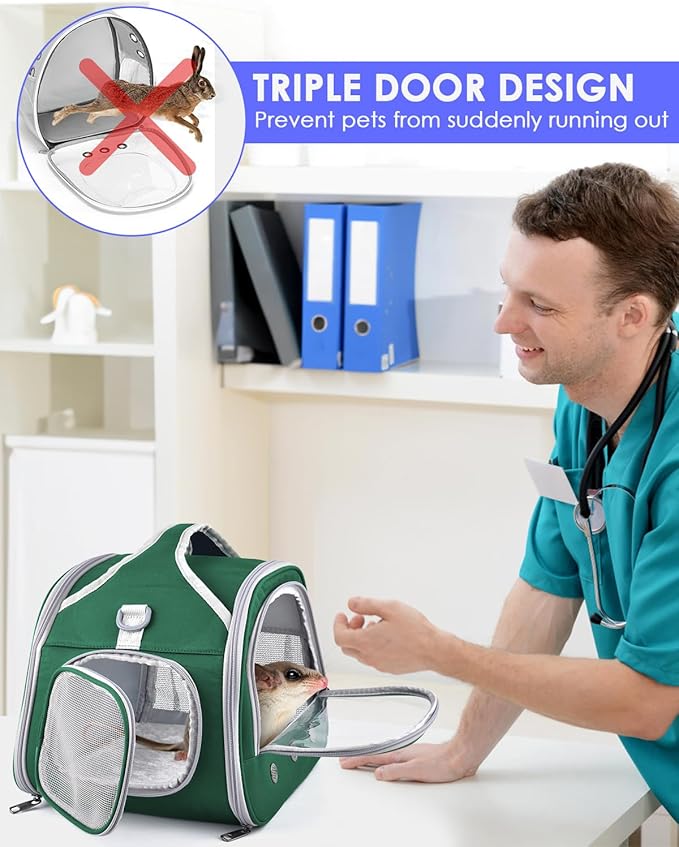 Bissap Bearded Dragon Travel Carrier, Portable Guinea Pig Carrier Bag Tortoise Carrier Pouch for Bunny Hamster Chinchilla Hedgehog Lizard Bird Outgoing Reptile Travel Carrying Case - Green