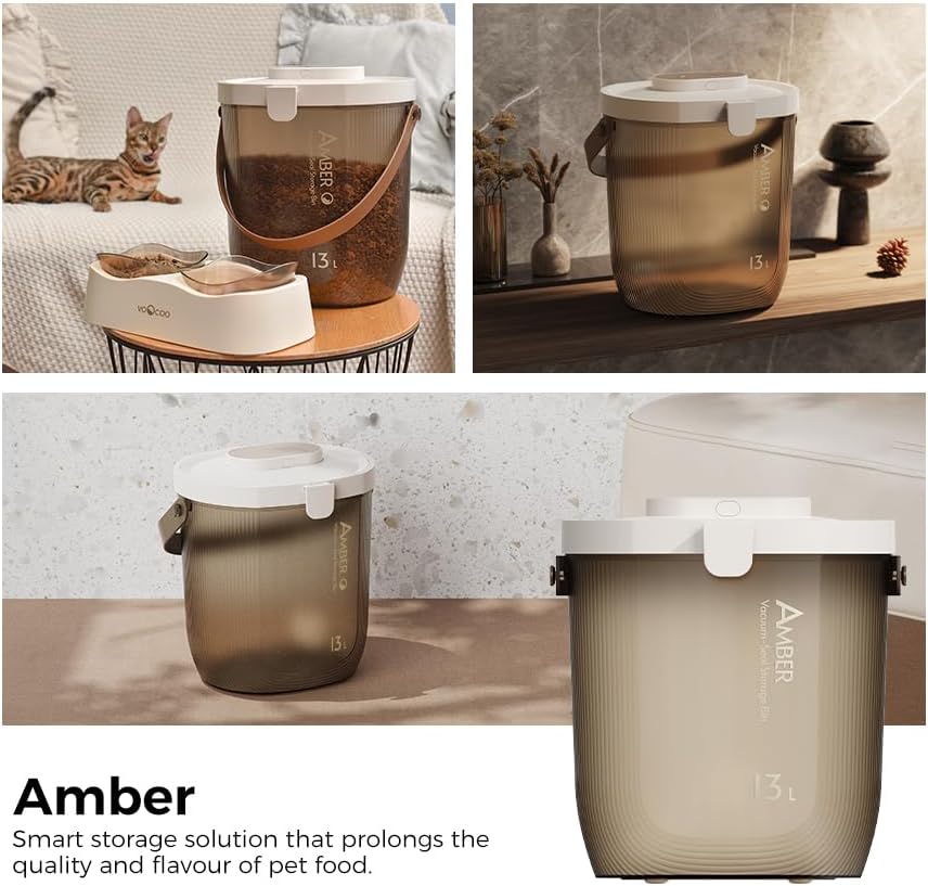 - ✅ 13L Large Capacity with Translucent Design -- Holds up to 16.5 lbs of pet food and features a translucent bin for easy content level checks without opening the lid. Perfect for large breed owners or multi-pet households.