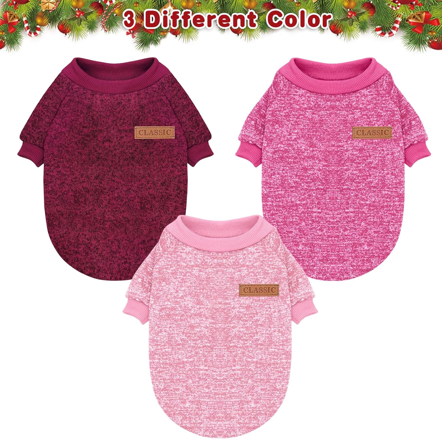 Idepet Pet Dog Classic Knitwear Sweater 3 Pcs, Fleece Coat for Small,Medium Dogs,Warm Pet Dog Cat Clothes,Soft Puppy Customes for Dog Grils Boys,XX-Small