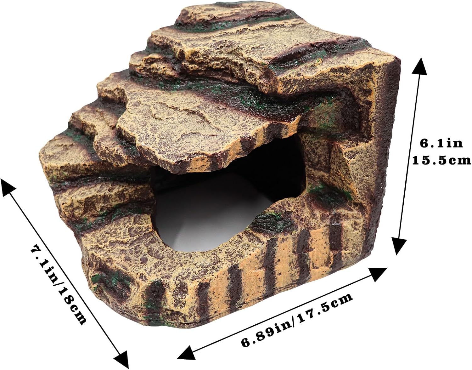 - Size: With dimensions measuring 7.1 x 6.89 x 6.1''/18 x 17.5 x 15.5 CM, this product offers an ample size for reptiles of all sizes - whether they are large, medium, or small. Before making a purchase, kindly consider the size to ensure that your beloved pet can easily enter and exit the hiding place without any issues.