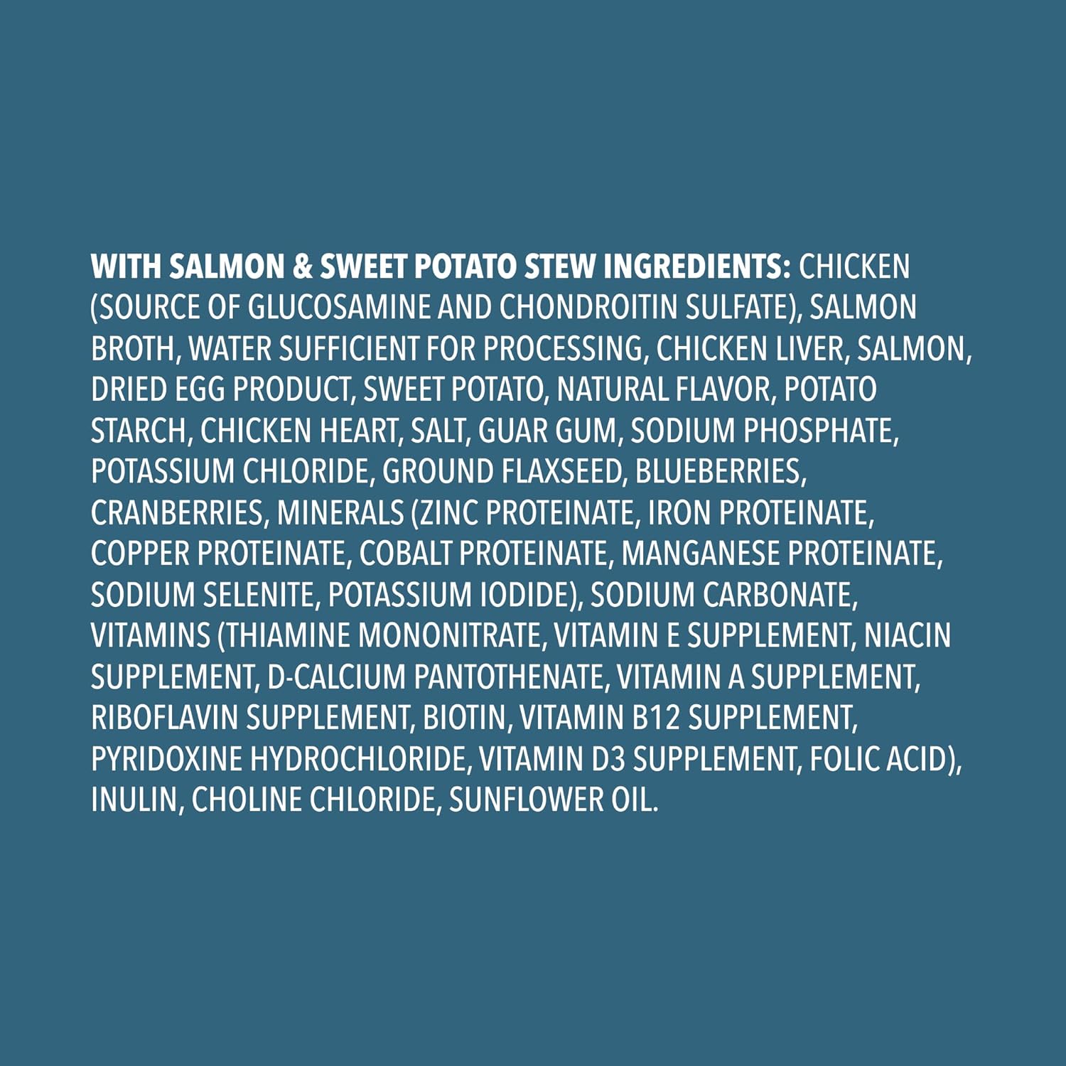 - Variety pack with 24 pouches - 8 of chicken and brown rice stew, 8 with salmon and sweet potato stew and 8 with lamb and brown rice stew