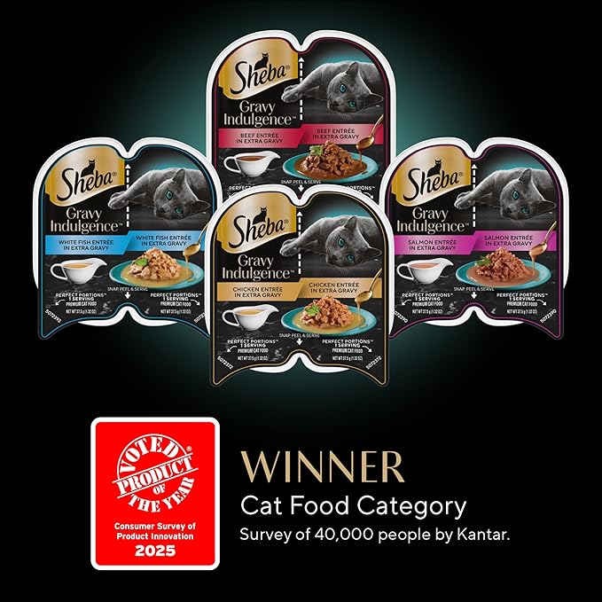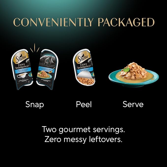 - Indulgent Recipe: Sheba Gravy Indulgence features cuts of Whitefish covered in a thick, decadent gravy your feline will love and love you for