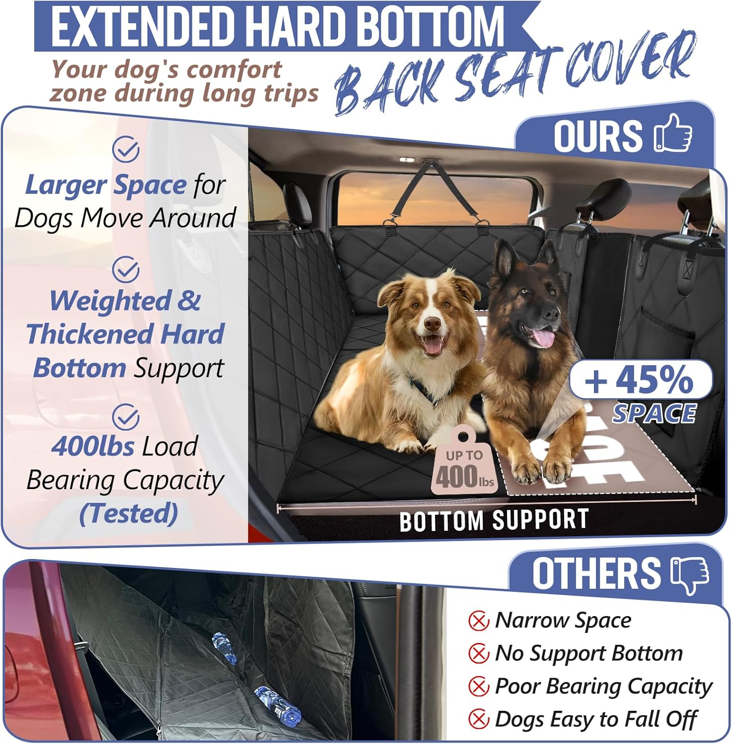 Back Seat Extender for Dogs Truck-Large Space, Dog Pet Seat Cover Back Seat Hard Bottom Holds 400lbs, Waterproof Dog Hammock for Crew Cab Trucks F150, RAM1500, Sierra, Tundra, Silverado