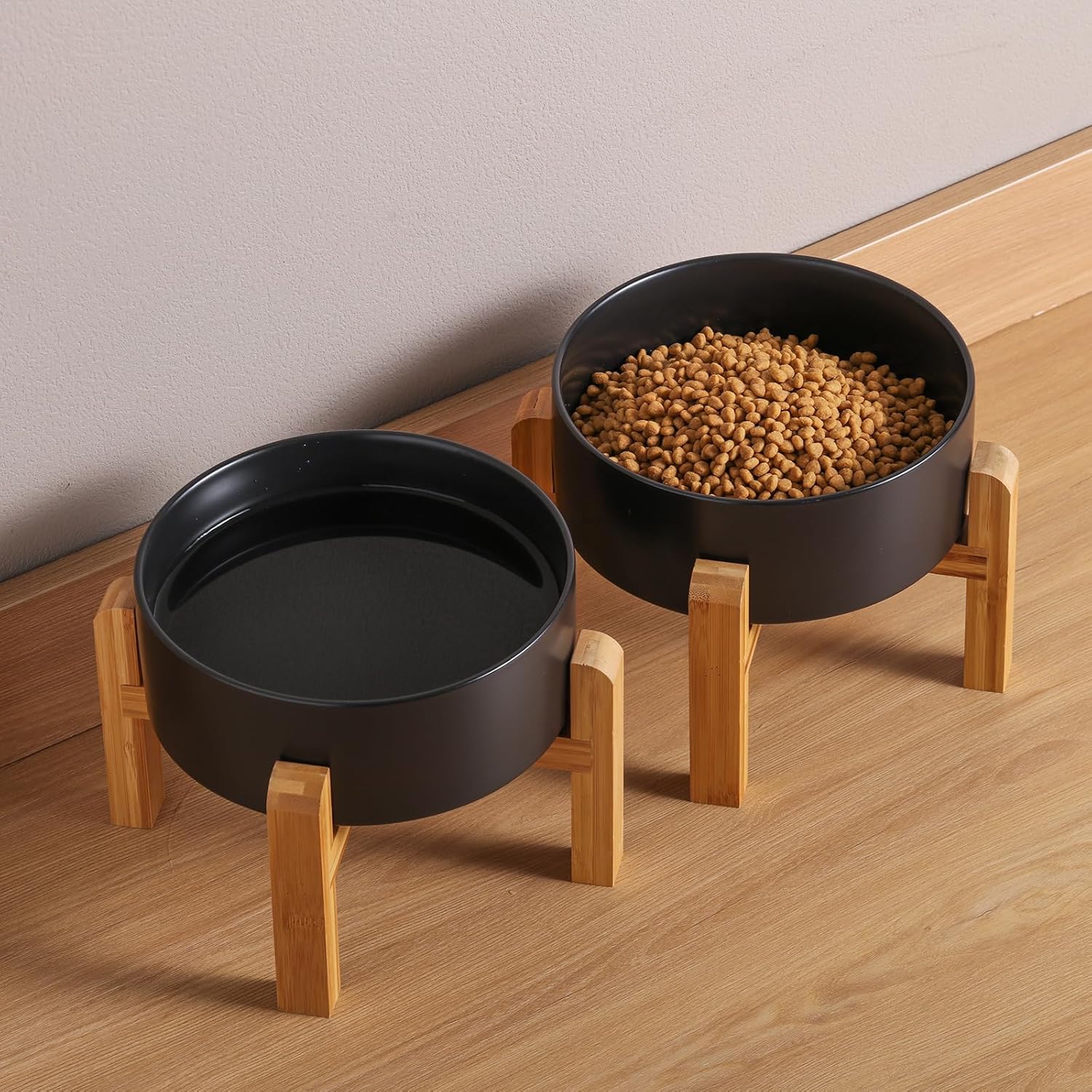 - Raised/Elevated Large Ceramic dog dish provides ease of access to food and water.Raised ceramic dog bowl provide dogs with correct eating posture,improved reducing bloating and neck strain with dogs,and prevents indigestion problem.Our dog feeder bowls are made from ceramic. Microwave safe, you can heat your dog's food and water at any time. If you love your dog, our elevated ceramic bowl will be your best choice.YOUR PETS DESERVE THE BEST!
