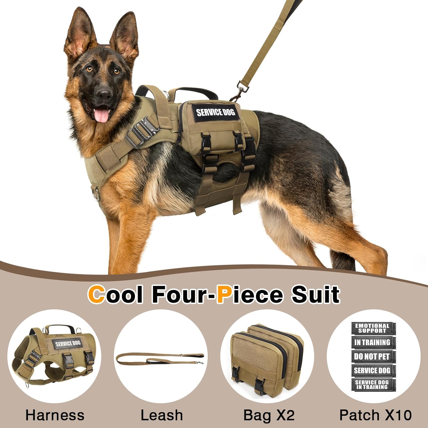 - 【Molle System】: Equipped on both sides for pouches, water bottles, and tactical dog gear. Multiple Hook & Loop Panels for morale patches and badges to showcase your dog’s personality. A wide range of use for personal service, law enforcement, hunting, or outdoor recreation. The package contains a dog harness, and 10 pieces of dog patches, such as Service dog, do not pet, in training, emotional support and service dog in training, enough quantity for you to decorate the dog’s vest harness.