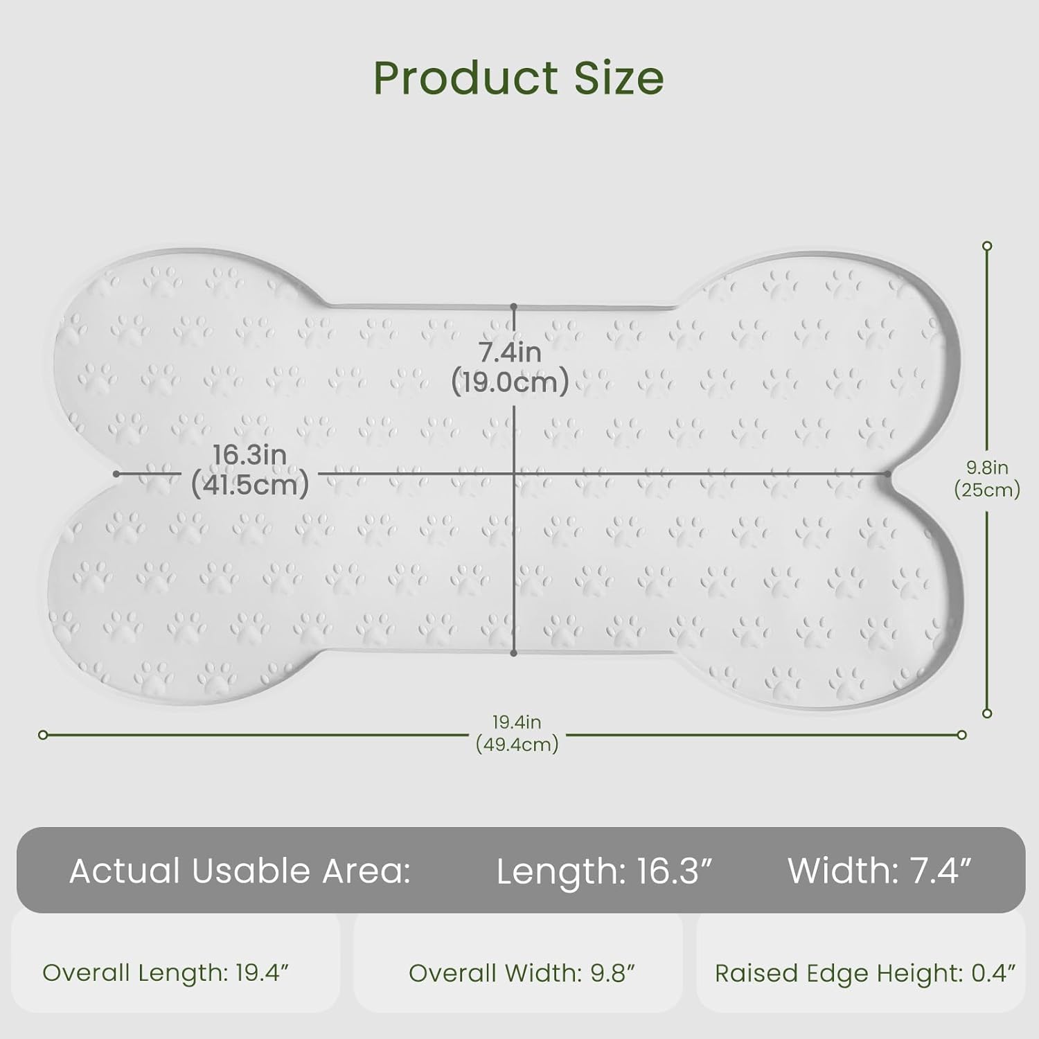 - Health Silicone Material - This pet bowl mat is non-toxic, and non-allergenic, protecting the health and safety of your pet's feeding. 19.4" x 9.8" holds two regular bowls, perfect for small to medium-sized dogs and cats to enjoy a delicious meal tray.