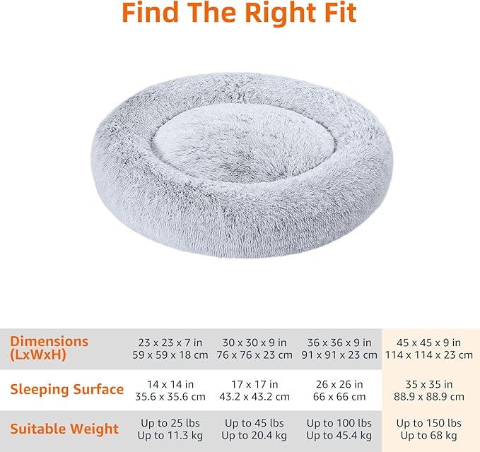 - Round shape and fluffy bolster make the soft, comfortable dog bed perfect for pets who like to burrow