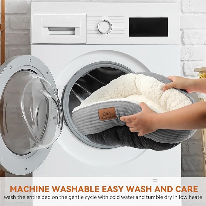 - EASY CARE: Our dog beds are designed to be fully machine washable, allowing you to effortlessly keep them clean and fresh. Simply place the entire bed into the washing machine, select a gentle cycle with cold water, and after washing, tumble dry on low heat. This convenient cleaning process ensures that your pet's bed always remains in top-notch condition, providing a hygienic and cozy resting place for your furry friend.