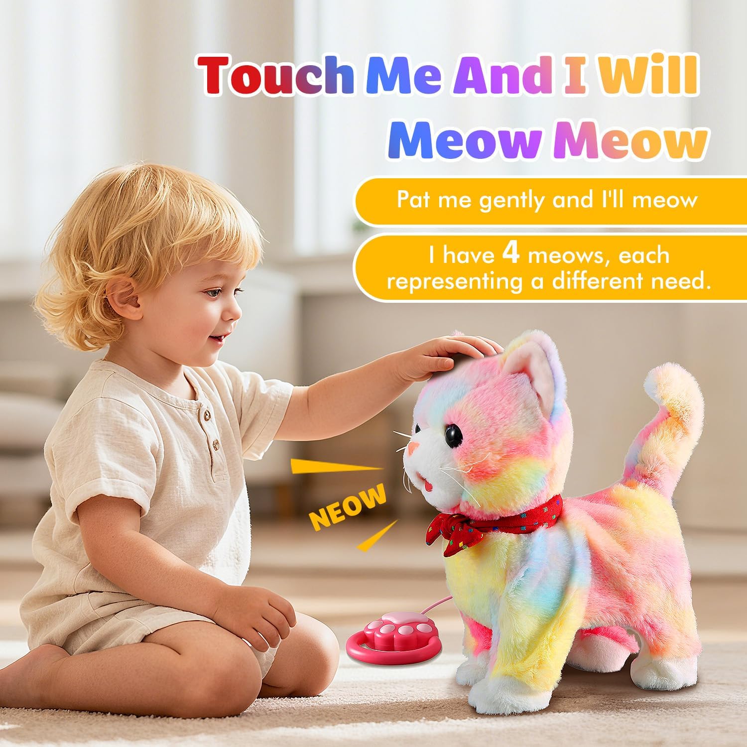- Wonderful Gifts:For kids who love cats, this will be a great gift for early education, birthdays, Christmas, Children's Day, holidays. Walking Cat Toy can stimulate kids’ interest in singing and talking, cultivates a sense of rhythm and coordination; and cultivates the baby's ability to recognize things. It is an excellent companion for your baby's growth.
