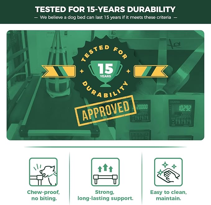 - Indestructible & Dog-Safe: Crafted with a premium aluminum alloy frame and chew-proof edges, this bed withstands aggressive chewers while keeping your pup’s gums safe and happy.