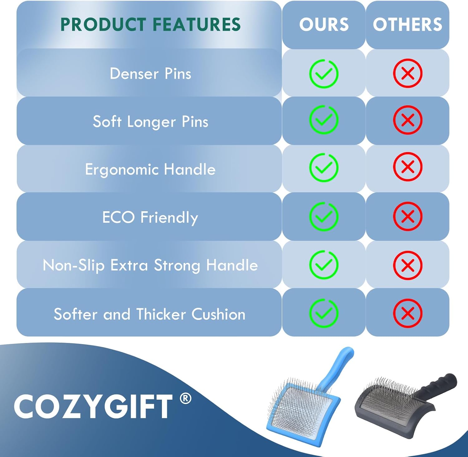 - [100% Guarantee] This slicker brush is well-priced and designed for your convenience. Keep one at home and another in the car for easy grooming on the go. It’s also a thoughtful gift for family, friends, and colleagues—COZYGIFT dog grooming brush is a sweet choice for pet lovers.