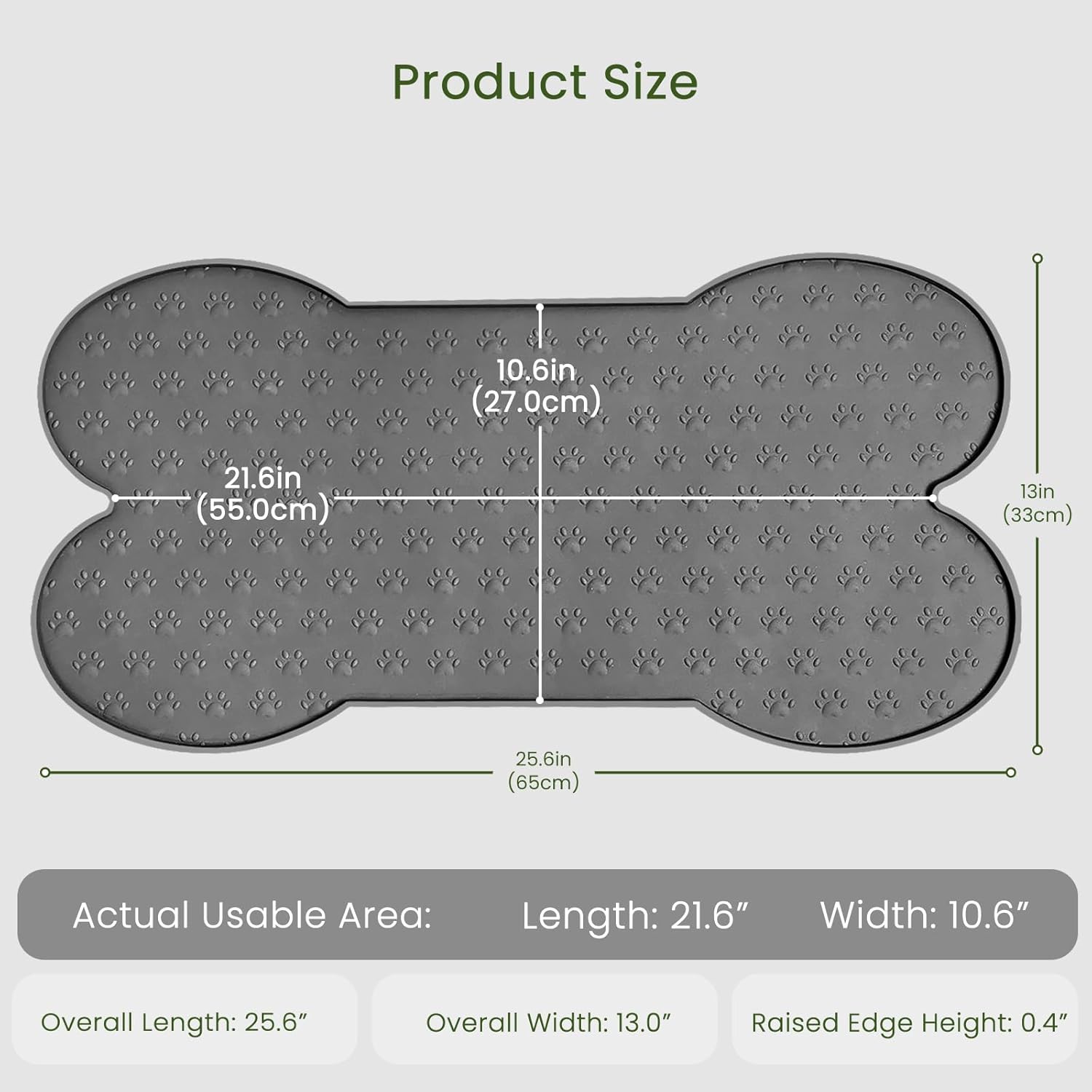 - Health Silicone Material - This pet bowl mat is non-toxic, and non-allergenic, protecting the health and safety of your pet's feeding. 25.6" x 13" holds two regular big bowls, perfect for medium to large-sized dogs and cats to enjoy a delicious meal tray.