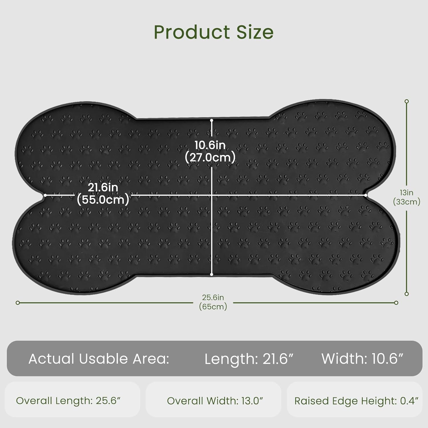 - Health Silicone Material - This pet bowl mat is non-toxic, and non-allergenic, protecting the health and safety of your pet's feeding. 25.6" x 13" holds two regular big bowls, perfect for medium to large-sized dogs and cats to enjoy a delicious meal tray.