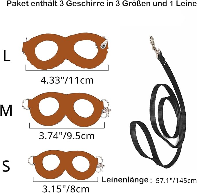 - 1. 3-Pack Sizes for Small Pets Our sugar glider leash and harness set includes three sizes (Large: 4.33", Medium: 3.74", Small: 3.15") and a 1.6-meter leash, making it a versatile choice for small animals like sugar gliders, squirrels, hamsters, rats, and reptiles. Whether you need a harness for sugar glider or a leash for sugar glider, this set adapts to your pet’s growth and ensures controlled outdoor adventures