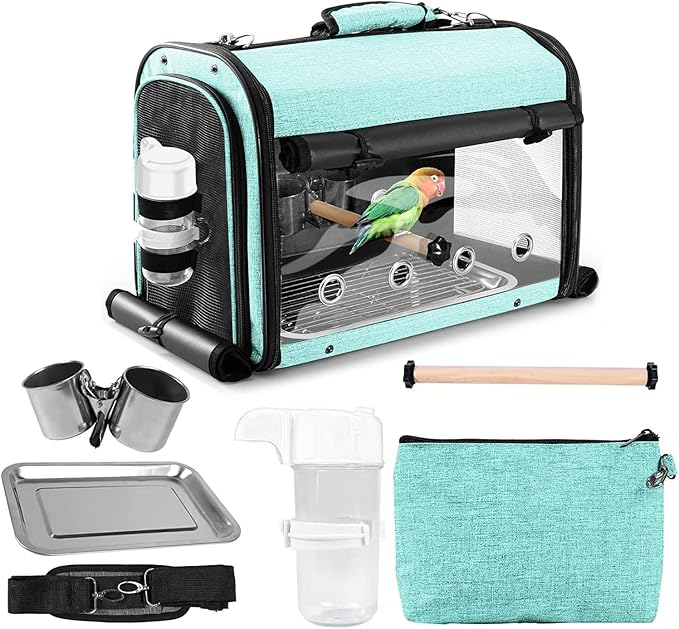 - 【FEEDING & PERCHING】There are removable bowls, a water bottle and two perches come with the bird carrier. It provides a comprehensive care and comfortable environment for birds.