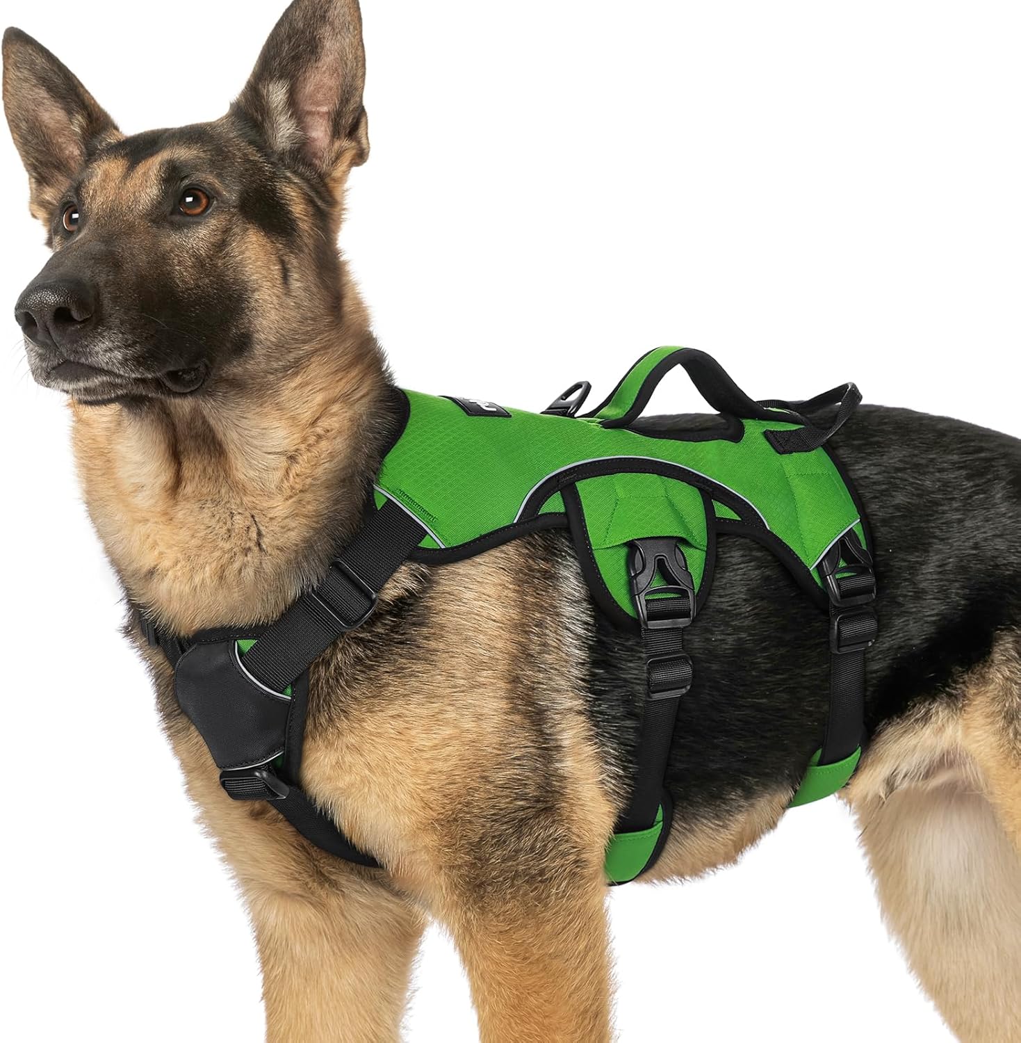 rabbitgoo Escape Proof Dog Harness, Soft Padded Full Body Pet Harness, Reflective Adjustable No Pull Vest with Lift Handle and Lesh Clip for Large Dogs Walking Hiking Training, XL, Green