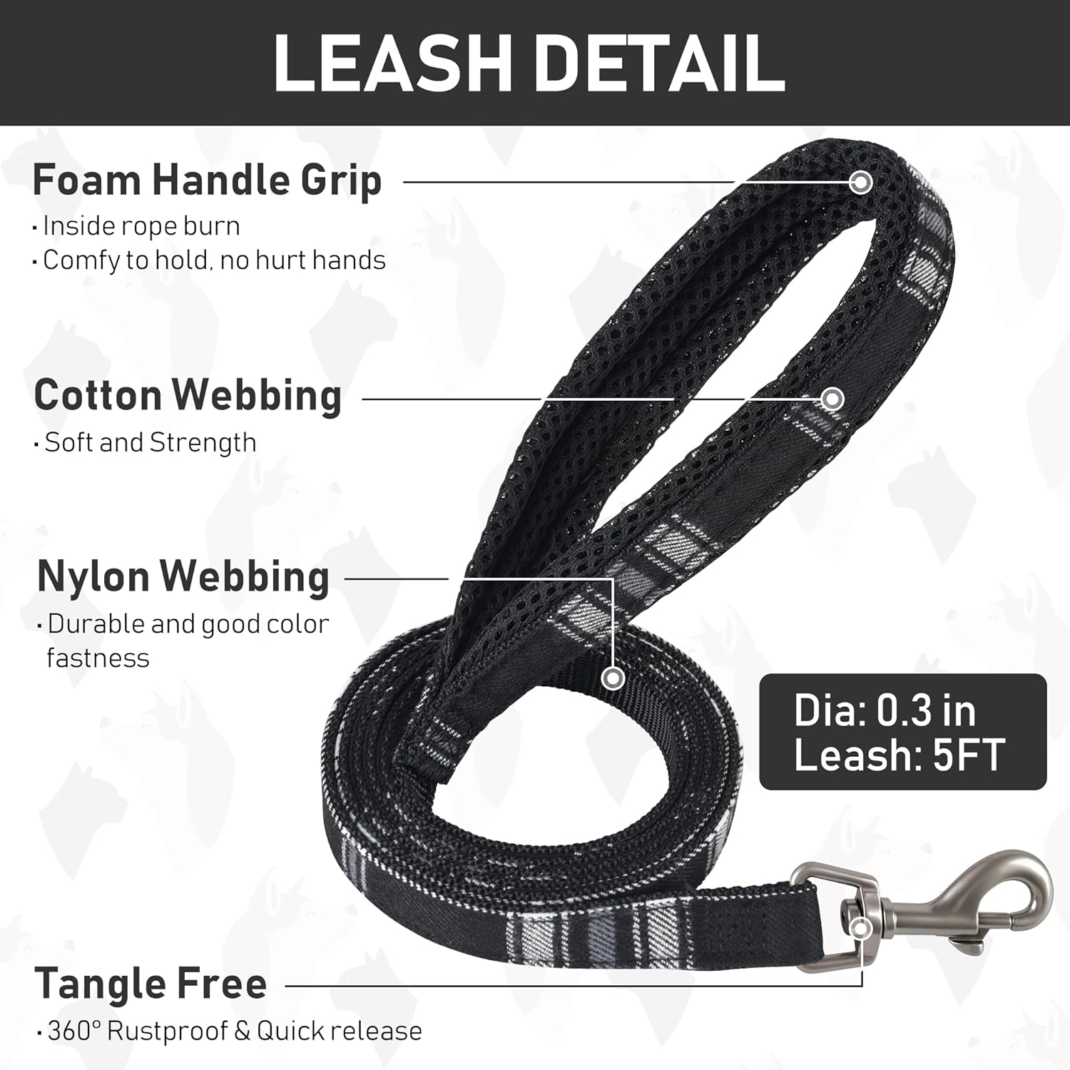 - DOG HARNESS, COLLAR AND LEASH: The package includes three items, a adjustable harness, a collar, and a 5ft matching leash. The collar is with bell and ID tag, the leash is increase with a 360-degree rotation metal hook, and the harness is adopted with a quick release buckle and double D-rings which are very heavy-duty. You don't need to spend extra time looking through other accessories, but you get all of these items at the same time with less money! So this is a very cost effective option.