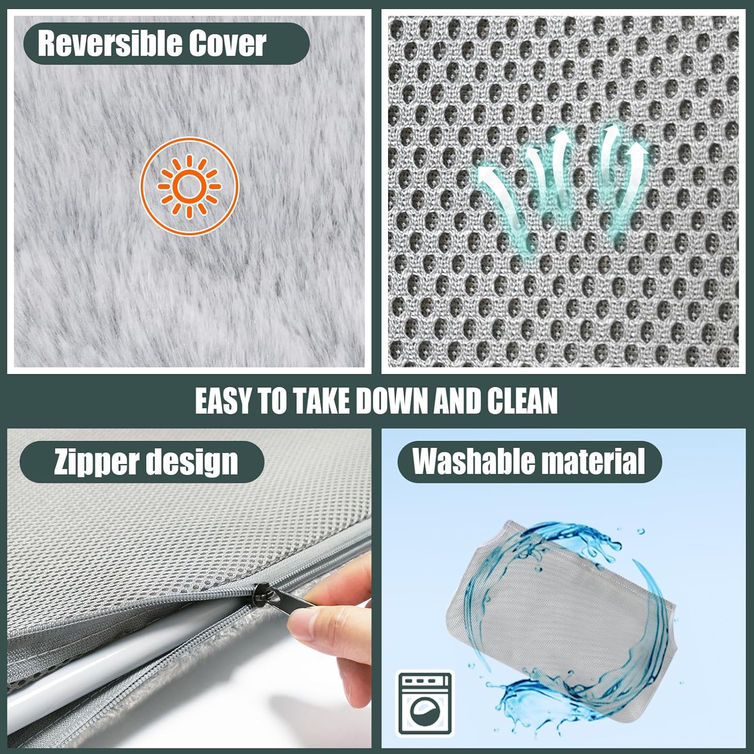 - 【Versatile and Reversible Cover】 Tailored for year-round enjoyment, our cat window hammock features a 2-in-1 cover with a zipper for a quick switch, ensuring comfort in every season. Crafted from imitation rabbit plush and sandwich mesh, your indoor cats will adore this cozy window seat, providing a perfect vantage point to watch birds.
