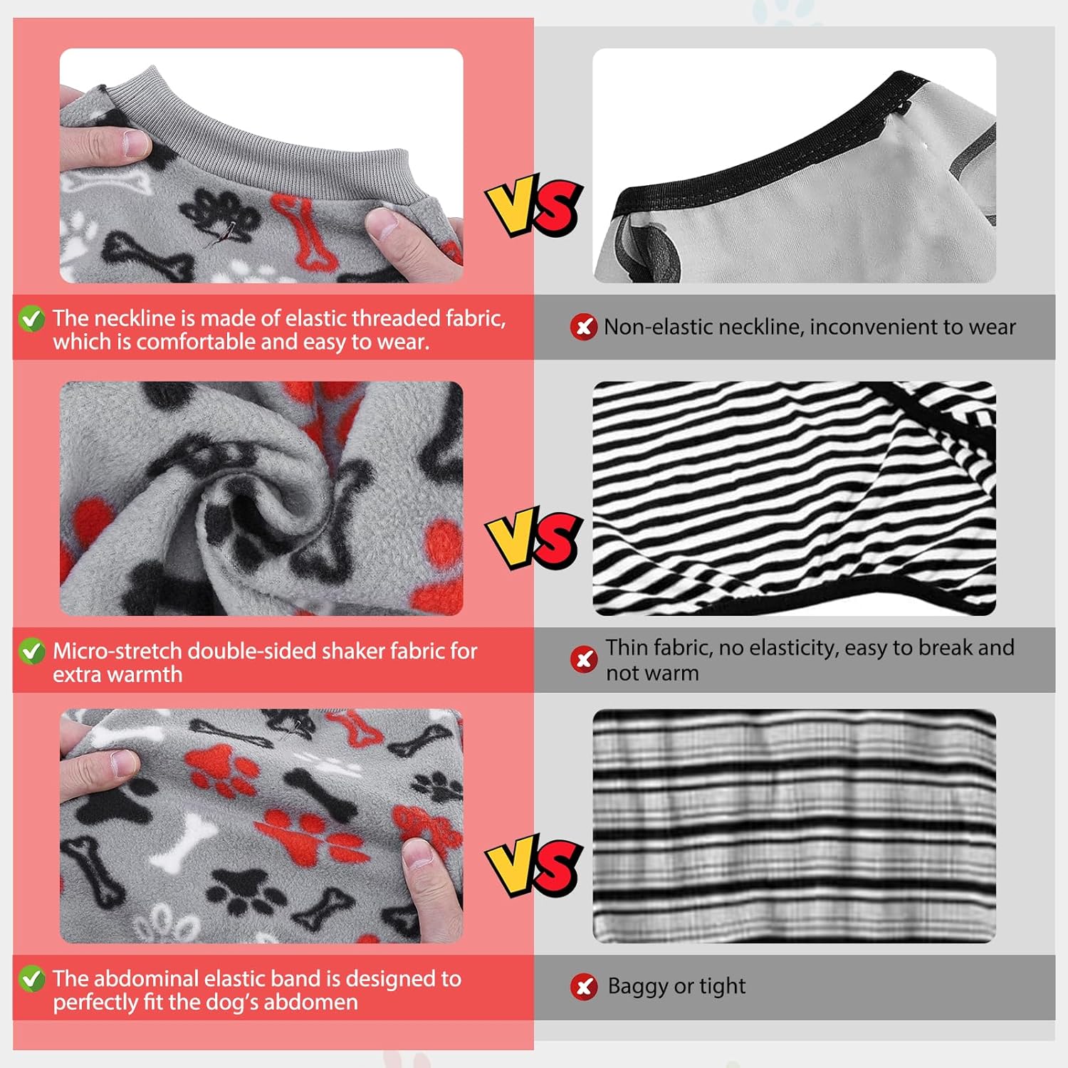- CUTE AND FASHIONABLE: Our pajamas are designed with adorable paw and bone patterns, perfect for pets who love to decorate. Make your pet look cute and eye-catching, making this dog onesie a perfect match for Christmas, New Year, Valentine's Day and all holidays.