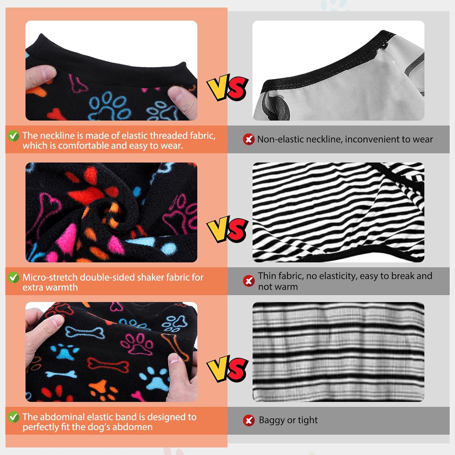 - DOG FLEECE PAJAMAS: Pajamas are made of soft stretch fleece to provide ultimate comfort, warmth and stretch for your furry friend. Machine or hand washable.