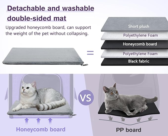 - 【 GREAT VENTILATION & COMFORT 】: Comes with 4-side breathable mesh windows, giving plenty of air for pets. Makes it easy for you to observe the movement of your pets while they are enjoying the scenery outside. The pet backpack carrier offers multiple ways to let your pet in and out with ease. To enhance comfort, the pet cushion is placed inside the bag's bottom and has a removable, washable cover. This ensures your furry friend has a spot to rest while on the go.