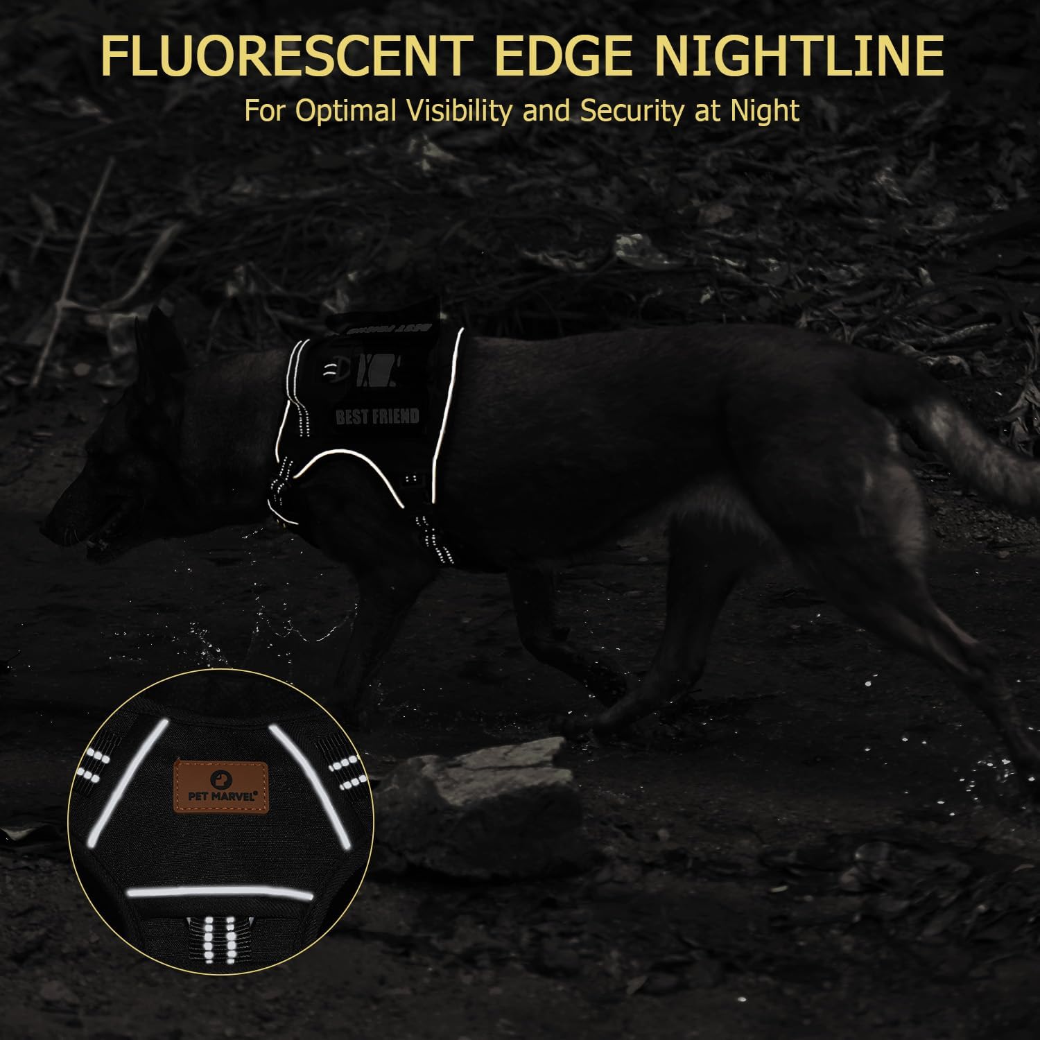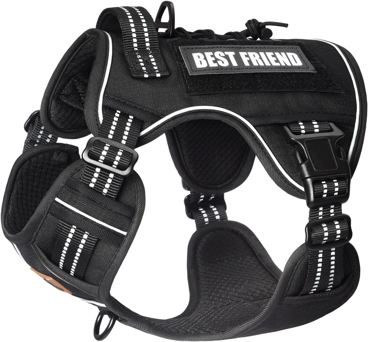- MOLLE System: Featuring multiple Hook & Loop panels and additional MOLLE straps, our tactical harness can carry a variety of equipment, including pouches, water bottles, and tactical dog gear. It's versatile for personal service, law enforcement, hunting, or outdoor adventures. This system also shows your dog's personality; the package includes an extra "BEST FRIEND" label for customization