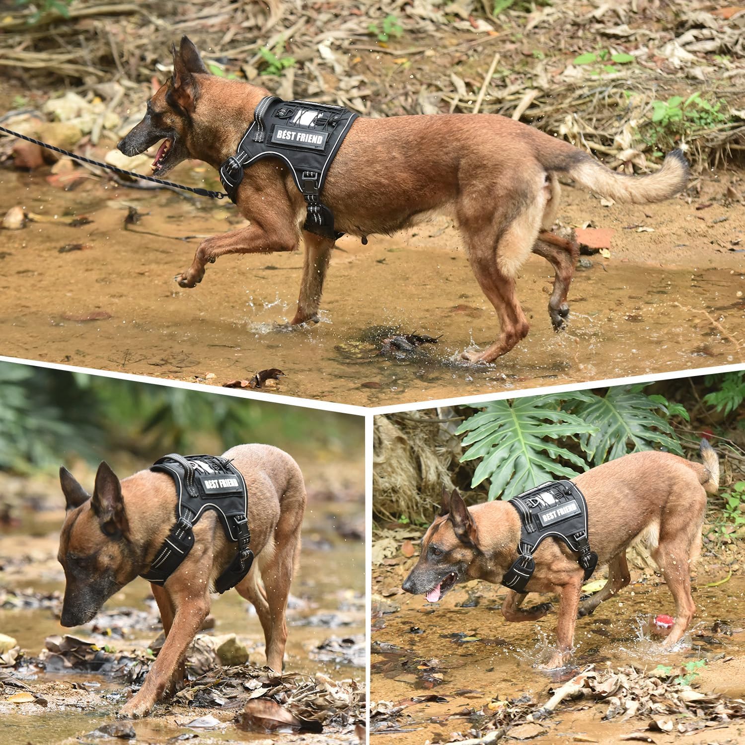 - MOLLE System: Featuring multiple Hook & Loop panels and additional MOLLE straps, our tactical harness can carry a variety of equipment, including pouches, water bottles, and tactical dog gear. It's versatile for personal service, law enforcement, hunting, or outdoor adventures. This system also shows your dog's personality; the package includes an extra "BEST FRIEND" label for customization