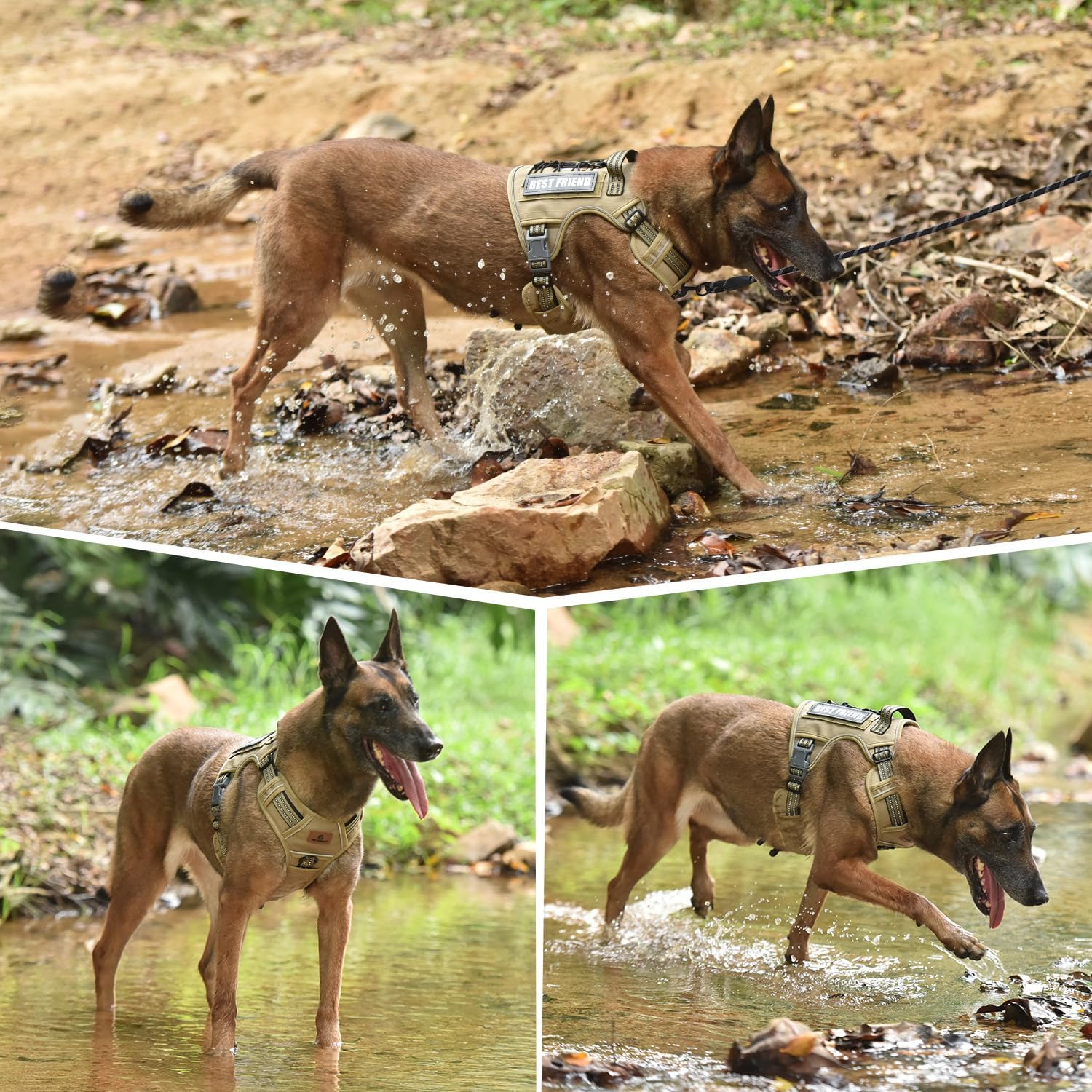 - MOLLE System: Featuring multiple Hook & Loop panels and additional MOLLE straps, our tactical harness can carry a variety of equipment, including pouches, water bottles, and tactical dog gear. It's versatile for personal service, law enforcement, hunting, or outdoor adventures. This system also shows your dog's personality; the package includes an extra "BEST FRIEND" label for customization