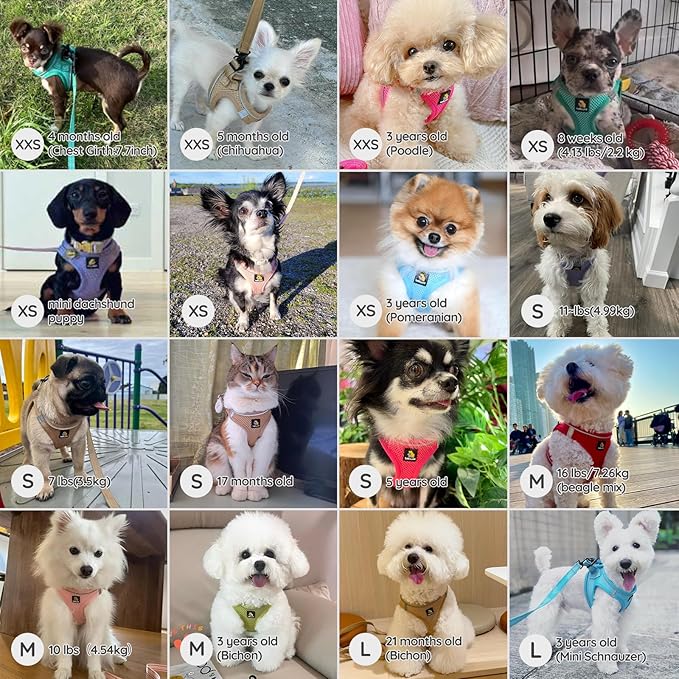 - 【Breathable Air Mesh】The puppy harness are made with soft mesh fabric, it’s lightweight but sturdy, easy to clean and quick-dry. The step in harness design make the pulling pressure distributed to the body to prevent choking.