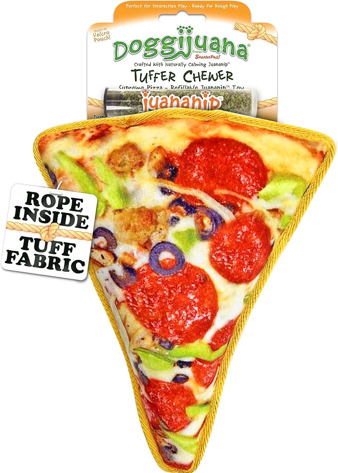 Doggijuana Tuffer Chewer Plush Dog Toy | Funny Dog Toy Plush with Juananip Catnip for Dogs | Calming Aid for Dogs | Interactive Squeaky Chew Toy for Play (Supreme Pizza)