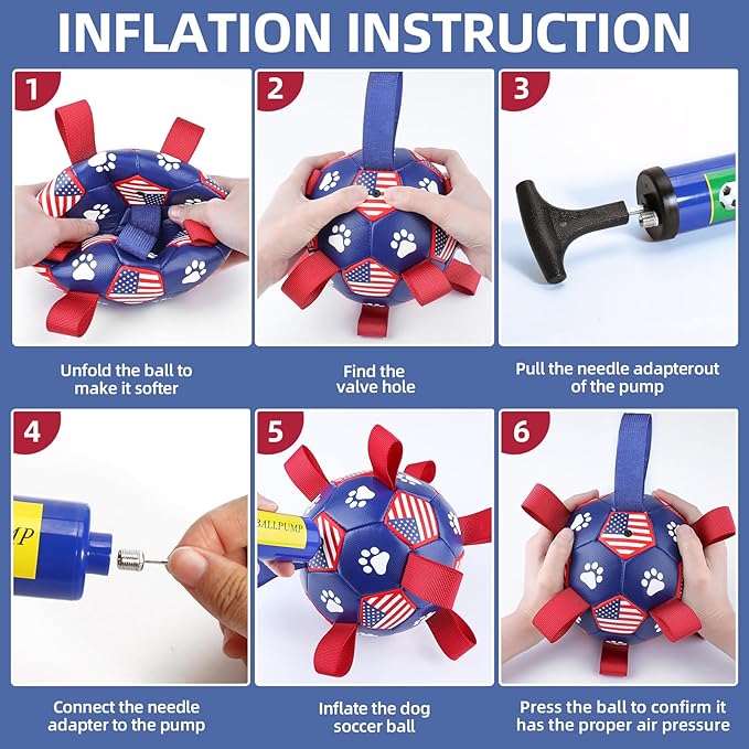 - โฝPump & Needle Adapter Included: The herding balls for dogs comes deflated. There's a needle point adapter and a pump inside as well while other items in the same market only include a ball needle. The soccer ball dog toy is 8 inches in diameter, perfect for large breeds, not for aggressive chewers.